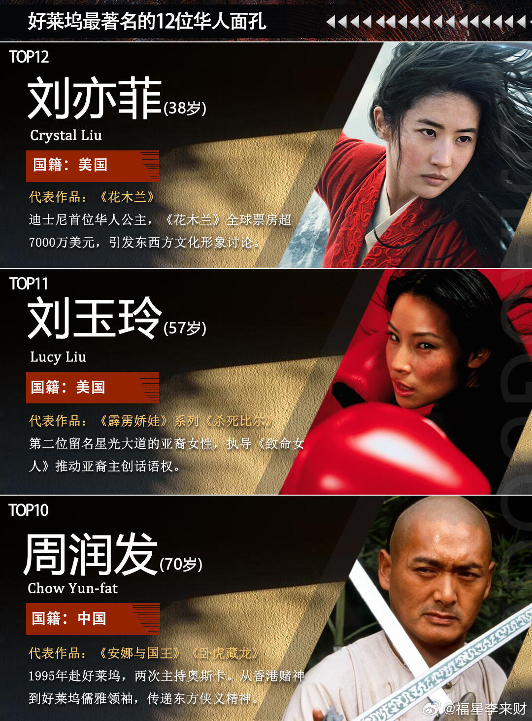 12位好莱坞最著名的华人演员,你看过他们的作品吗