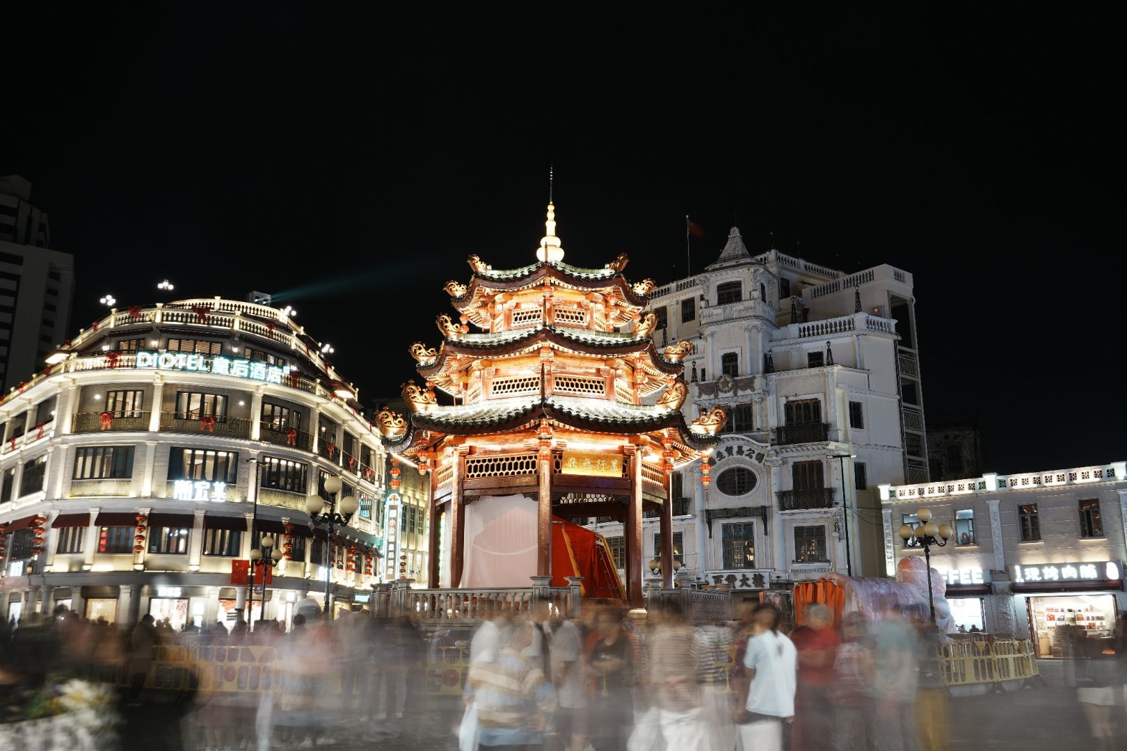 *在路上*汕头小公园...是汕头老城区的核心地标,也是中国内地唯一保存较完好的开埠区...中山纪念亭...骑楼群...哈,看见一段3d熊猫宣传电影,好逼真...广东汕头小公园... 漳州·漳州古城