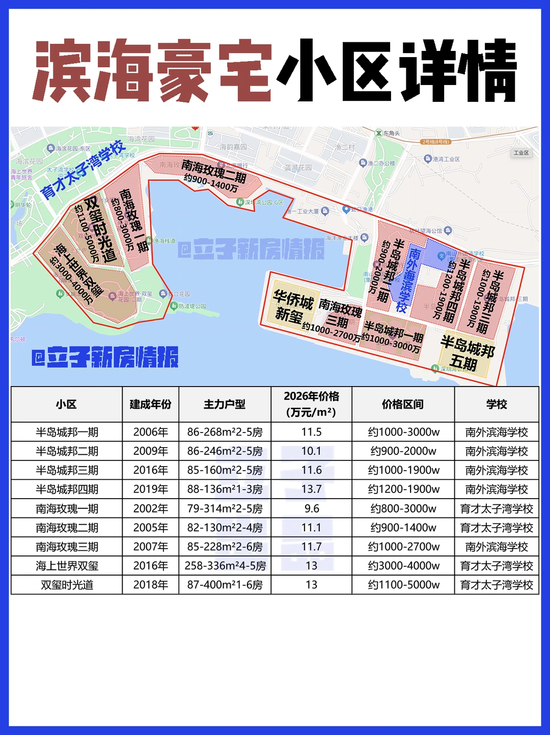 💡1000w以上豪宅:滨海豪宅,如:半岛城邦、南海玫瑰园、双玺,山边别墅,如:鲸山别墅、龟山别墅等
