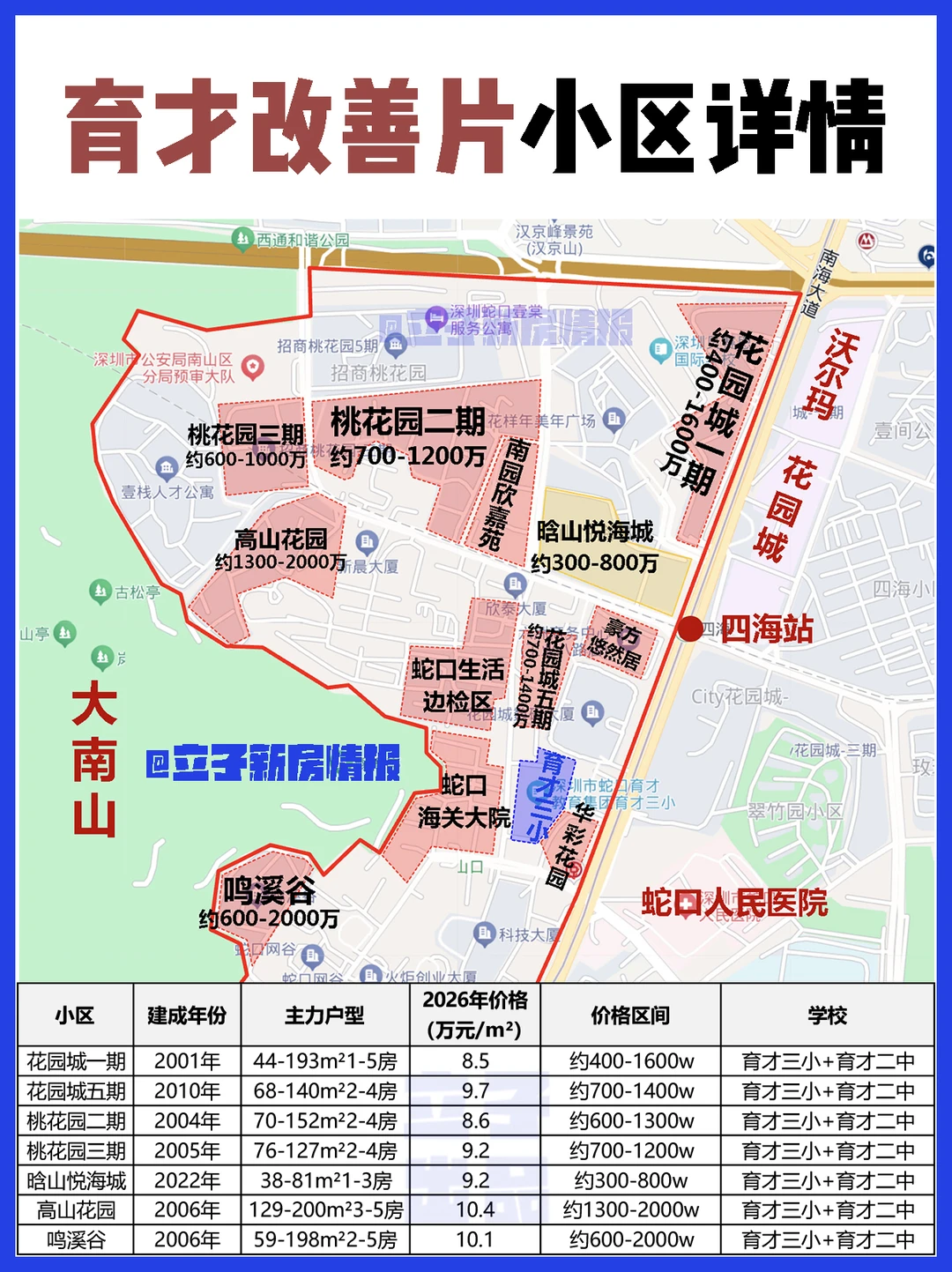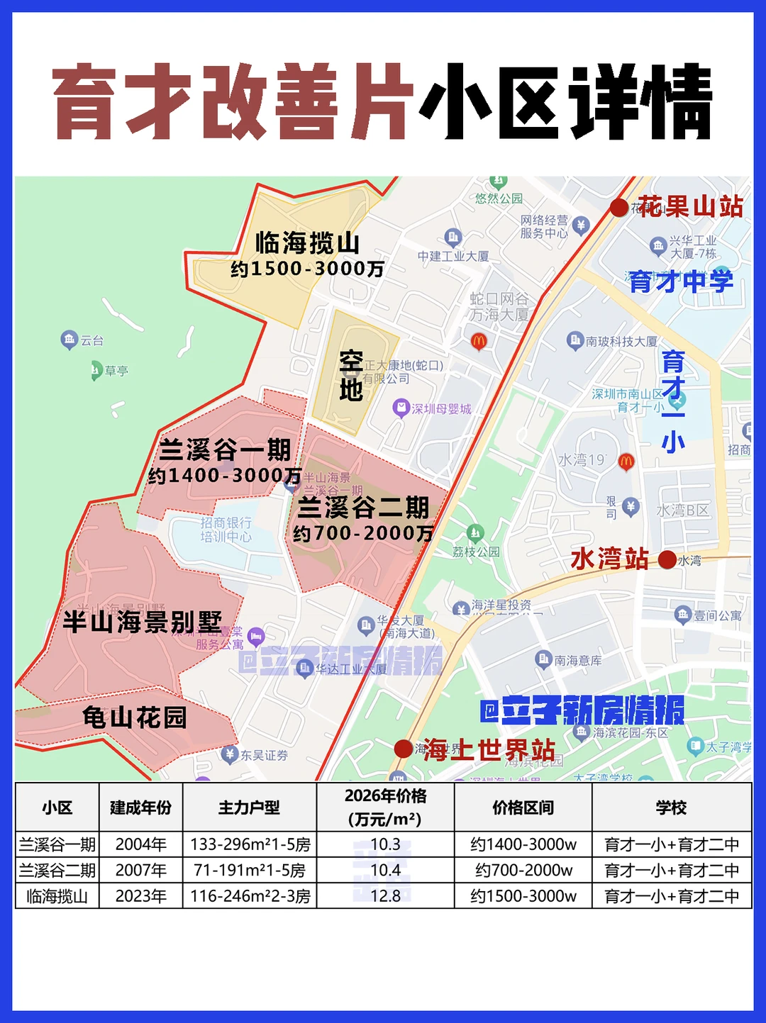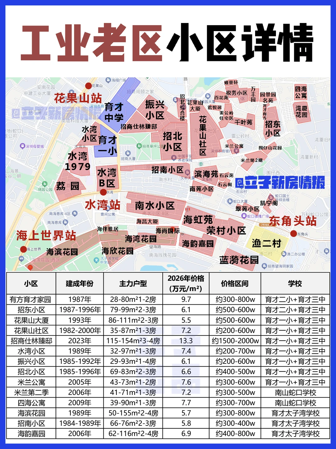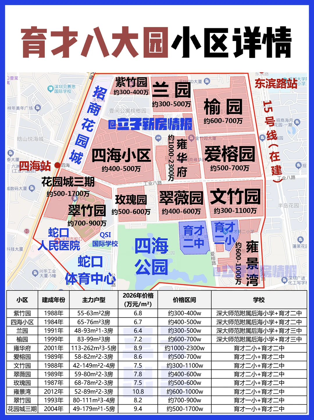 💡600w内刚需盘:更推荐八大园及周边带双育才的老小区,如:翠薇园、玫瑰园、翠竹园、水湾小区等,这也是南山门槛朂低的1T组合学Q房