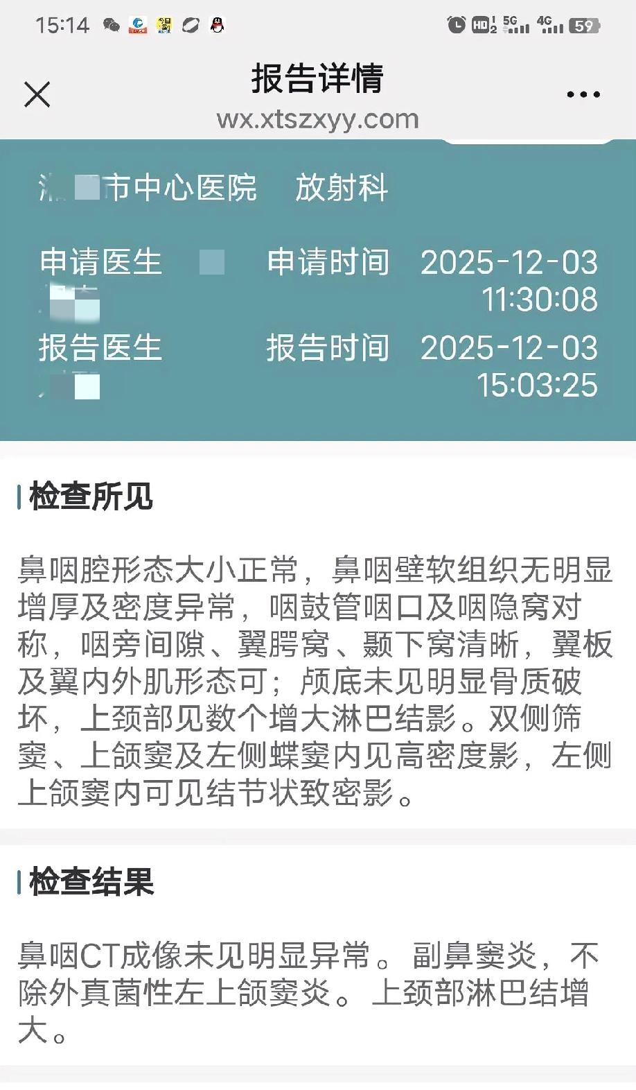 我的鼻窦炎中药治疗,是否已达到临床治愈?请大家对比我前后二个鼻内镜检查报告,留言、讨论并转发。(我中药调理治疗鼻窦炎进程之十三) 我于2025年5月,因鼻塞做了鼻内镜检查发现有鼻窦炎,有脓涕,断断续续过中成药和西药,似乎越来越严重。从2025年12月3日我开始系统采用中药调理治疗(当日做CT显示为副鼻窦炎),今天已是第90天,总就诊6次,已服用中药44剂(检查费除外,中药花了1300多元),期间服用过半个月的中成药桉柠派肠溶胶囊(自购),坚持每天用专用洗鼻盐水洗鼻(拼多多上购买的洗鼻壶1只+90包洗鼻盐共10多元),期间未服用其他西药,已早无鼻塞、无流涕等任何症状。 今天下午是我第6次复诊,找的是同一医院(三甲)门诊耳鼻喉头痉外科主任看的,做了一个纤维鼻咽镜检查(100元)、一个纤维喉镜检查(120元),还做了一个甲状腺-颈部淋巴结彩超(140元)共360元,医保统筹账户报销了90多元。检查结果出来后,主任没说什么,我问我的鼻窦炎是否已达到临床治愈标准?他也不回答,他是嫉妒中医了吗?只说我有咽炎,和淋巴结增大。 我的彩超报告显示:我还存颈部淋巴结增大,我暂拒绝了医生要我做淋巴穿刺活检的治疗方案,开了2盒中成药清热散结的胶囊(共66元)。 我因春节后,上周开始上班,在公司食堂就餐中餐(除蔬菜外,其他几个菜都放有辣椒),厨师未似年前单独为我炒不辣的菜,以致上火🔥,纤维喉镜检查我有咽炎了,幸好暂未影响到鼻子鼻腔。 去年12月,耳鼻喉科的医生对我说,鼻窦炎服药没什么效果,只能手术治疗。我拒绝了。知道手术只治标,不治本,易复发,易留后遗症,这些情况西医根本就不说。我选择了同一医院的中医馆雷大夫开中药为我调理保守治疗、观察。我也观察到发现挂雷大夫号的病人比较多。 我在过去3个月中,服完了44剂中药,三甲医院呼吸科中医雷大夫辨证调理我的虚实夹杂症,健脾健胃补肾,清热除湿,祛除身体风邪,恢复身体阳气,增强抵抗力,提高免疫力,鼻窦就慢慢自我修复了。 但后续生活护理也很重要,日后每天要做好鼻部护理,洗鼻、戴口罩保温、不吃辛辣腥物发物食品。 鼻🔥炎 鼻炎中药方法 鼻塞鼻窦炎 鼻窦炎 有没有患上鼻窦炎又治好了的友友? 过敏性鼻炎和鼻窦炎难治吗? 鼻窦炎只有手术能治好吗? 鼻涕多鼻塞,鼻窦炎如何恢复? 鼻窦炎有那么难治吗 鼻窦炎可以用中药调理吗 鼻炎患者的痛苦有谁能懂呢? 急性鼻窦炎怎么治疗效果最快? 请问鼻窦炎在中医中属于哪个问题 长期慢性的鼻窦炎,会有哪些危害?