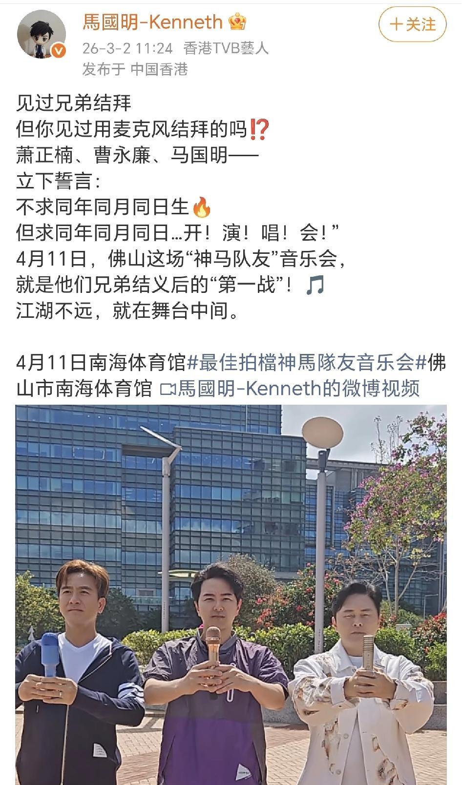 三个TVB“老男孩”发毒誓开演唱会,一个咒自己便秘,一个赌电车没电。 结果谁能想到,最离谱的誓言,居然成了真。 当初那个视频笑死人。 马国明领着萧正楠、曹永廉,摆出桃园结拜的架势,对麦克风发誓“同年同月同日开唱”。 发的毒誓更是没眼看:便秘20天、电车半路没电、守门员踢不进空门。 网友全当是搞笑段子,根本没当真。 可就在昨晚,佛山国际体育文化演艺中心真的被他们点燃了。 “神马队友”演唱会座无虚席,三个不是专业歌手的演员,在台上又唱又跳。 互动环节比脱口秀还精彩,那种混不吝的兄弟默契,隔着屏幕都能感受到。 讲真的,现在多少号称顶流的演唱会都在划水。 假唱、敷衍、高高在上。 再看看这三位,为了一场演唱会能认真发“毒誓”,更能认真践诺。 他们是用行动告诉你:玩票,也能玩出专业级的诚意。 这年头,粉丝早就不傻。 是真心换真心的狂欢,还是流水线式的圈钱,一眼就穿。 他们能成功,赢的不是咖位,是那份笨拙又热忱的“人味儿”。 所以问题来了: 你是愿意为完美无瑕的假唱买单,还是为这种可能跑调但绝对真诚的现场鼓掌? 评论区告诉我,你挺谁? 马国明 港星 演唱会
