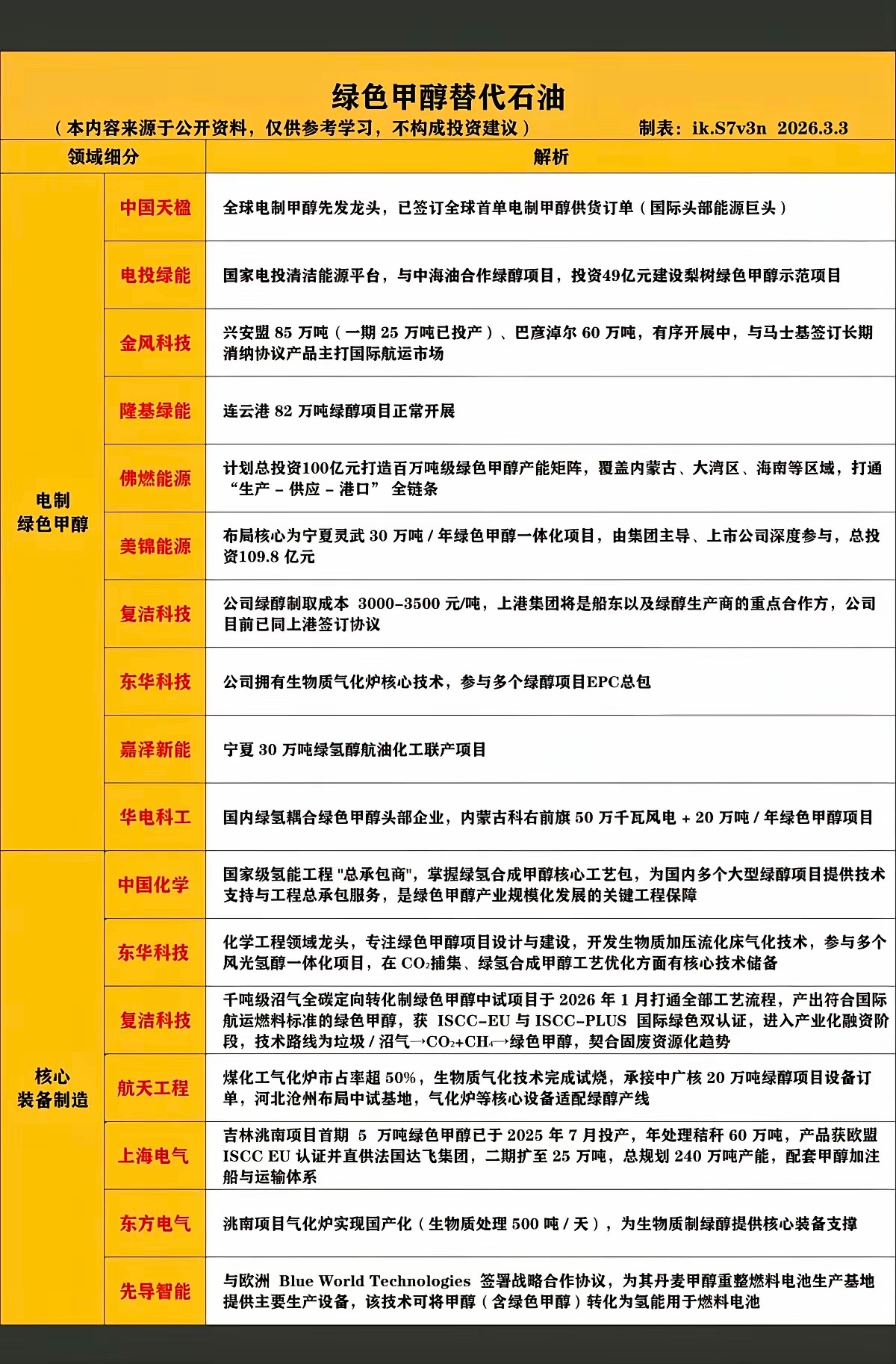 绿色甲醇替代石油概念股梳理分析!绿色甲醇替代石油的产业格局,主要分为三大板块:1