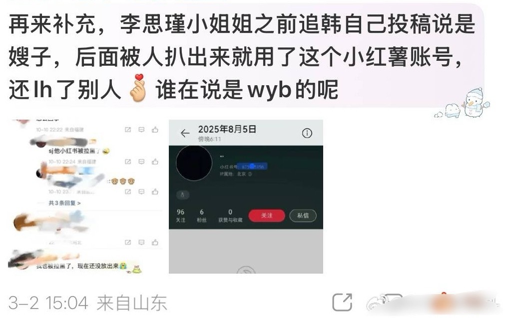 这条值得万转,李思瑾去年8月份在韩圈装嫂子就被扒出来这个爆料的红薯号皮下是她了,装什么wyb呢,还有她的录屏聊天记录也是从去年8月开始的,在韩圈装嫂失败又去嚯嚯wyb了这是