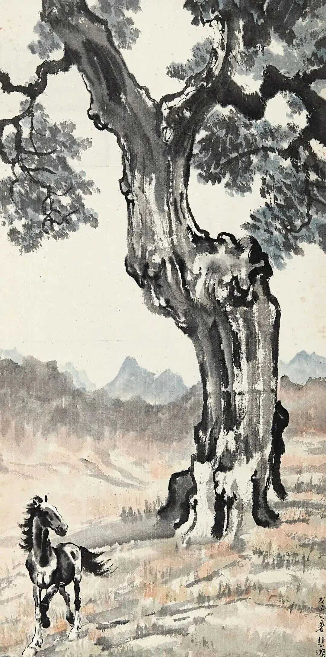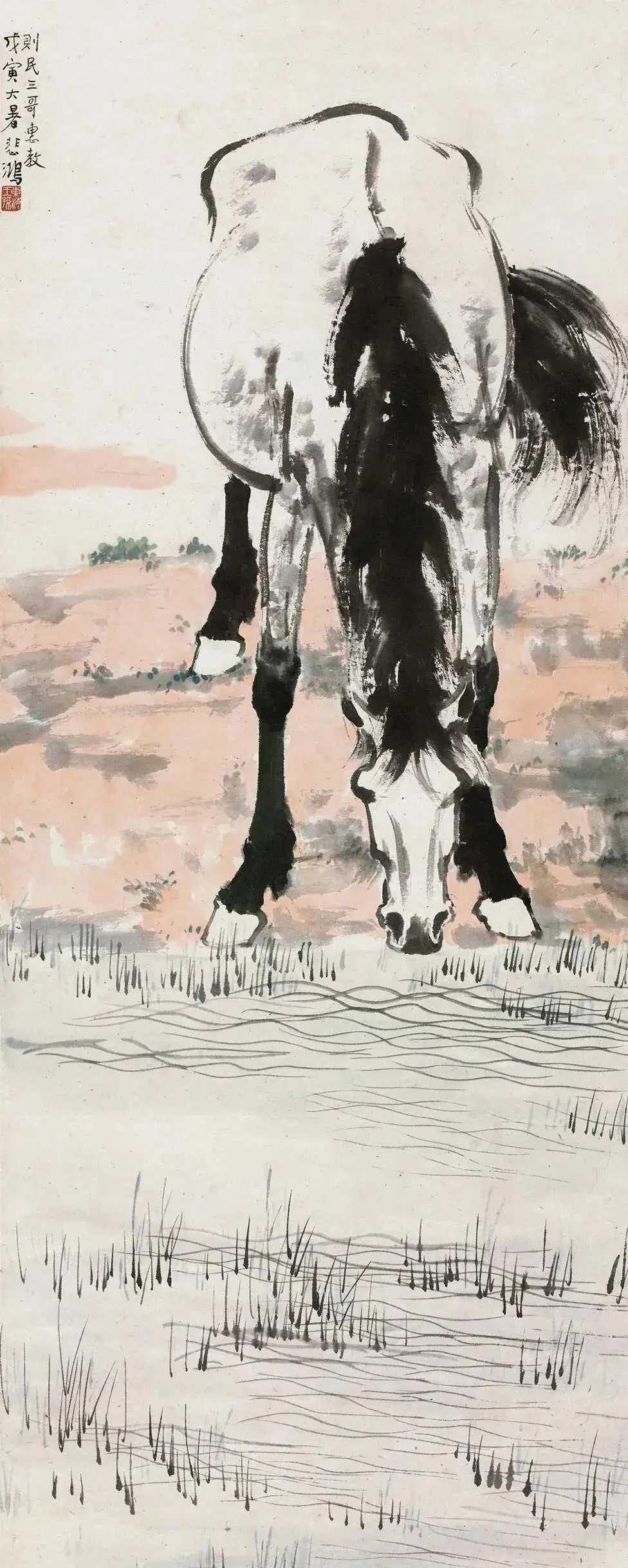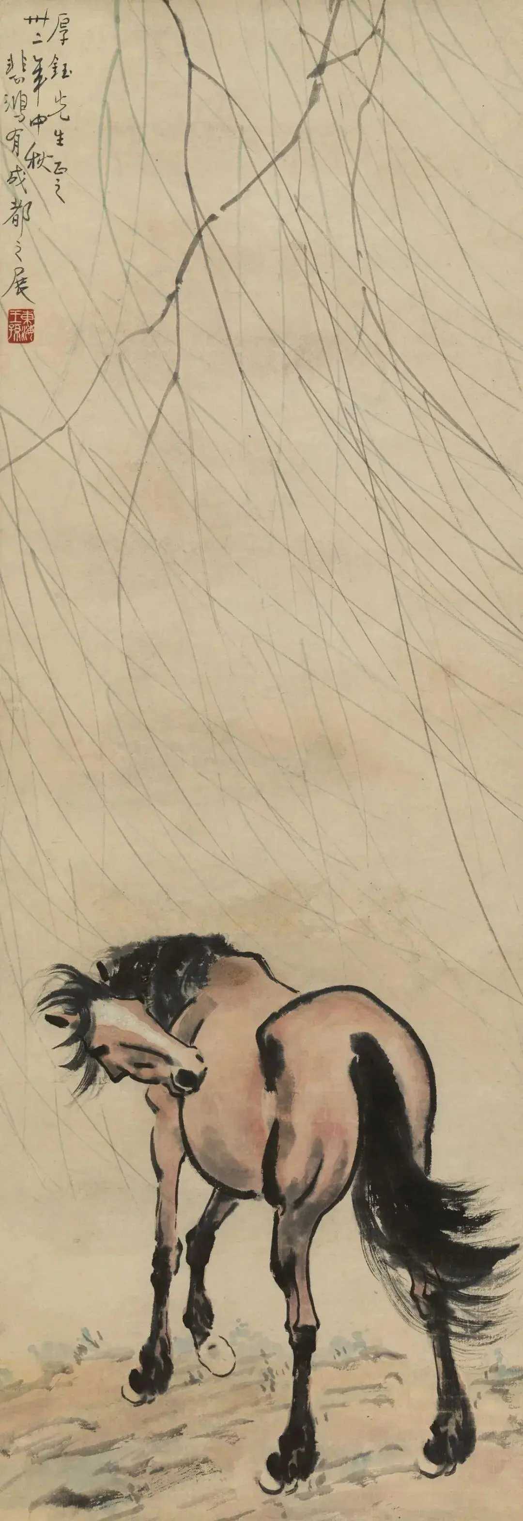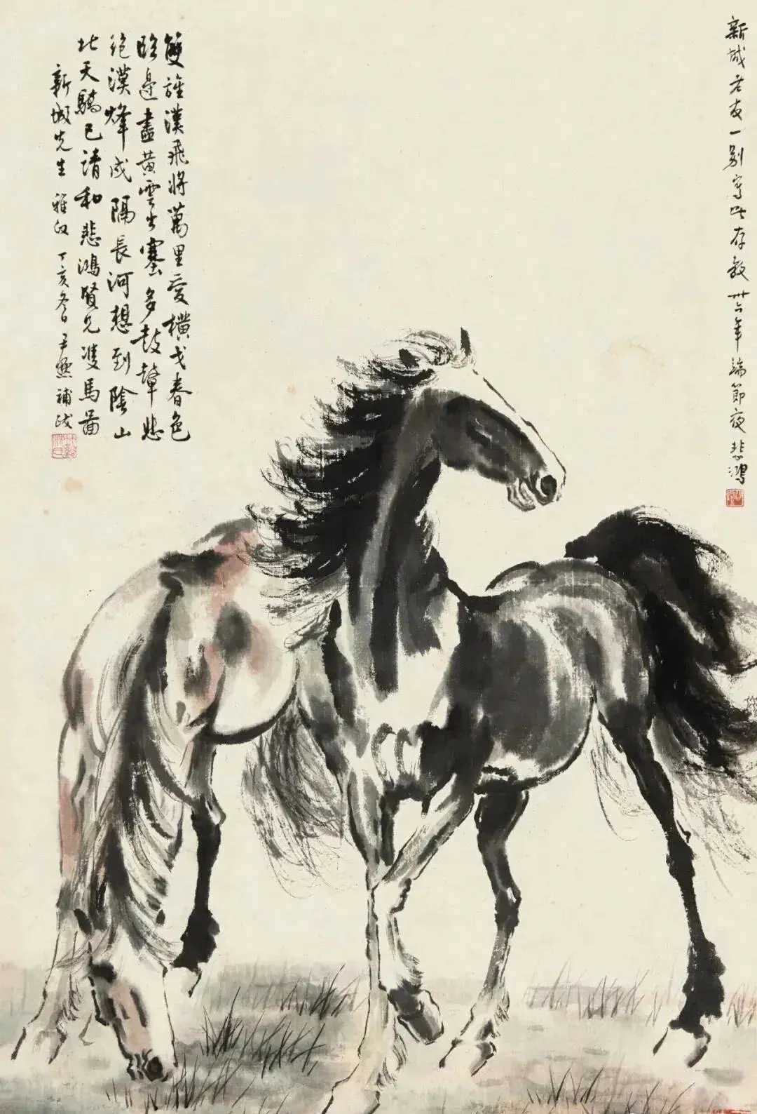 徐悲鸿最擅画马,他笔下的奔马给人以生机和力量,表现了令人振奋的积极精神。为现代中