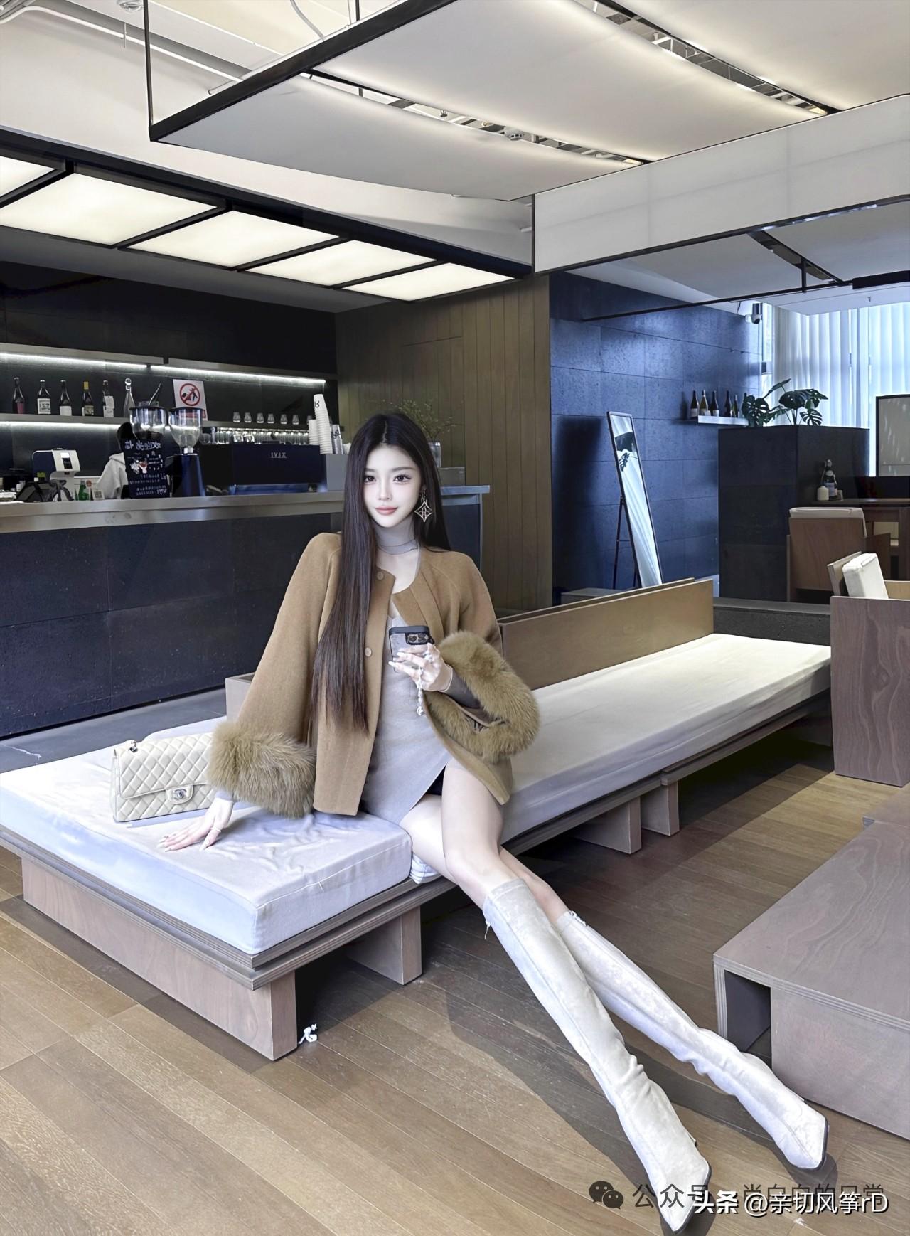 时尚穿搭指南:优雅咖啡馆里的时尚女郎