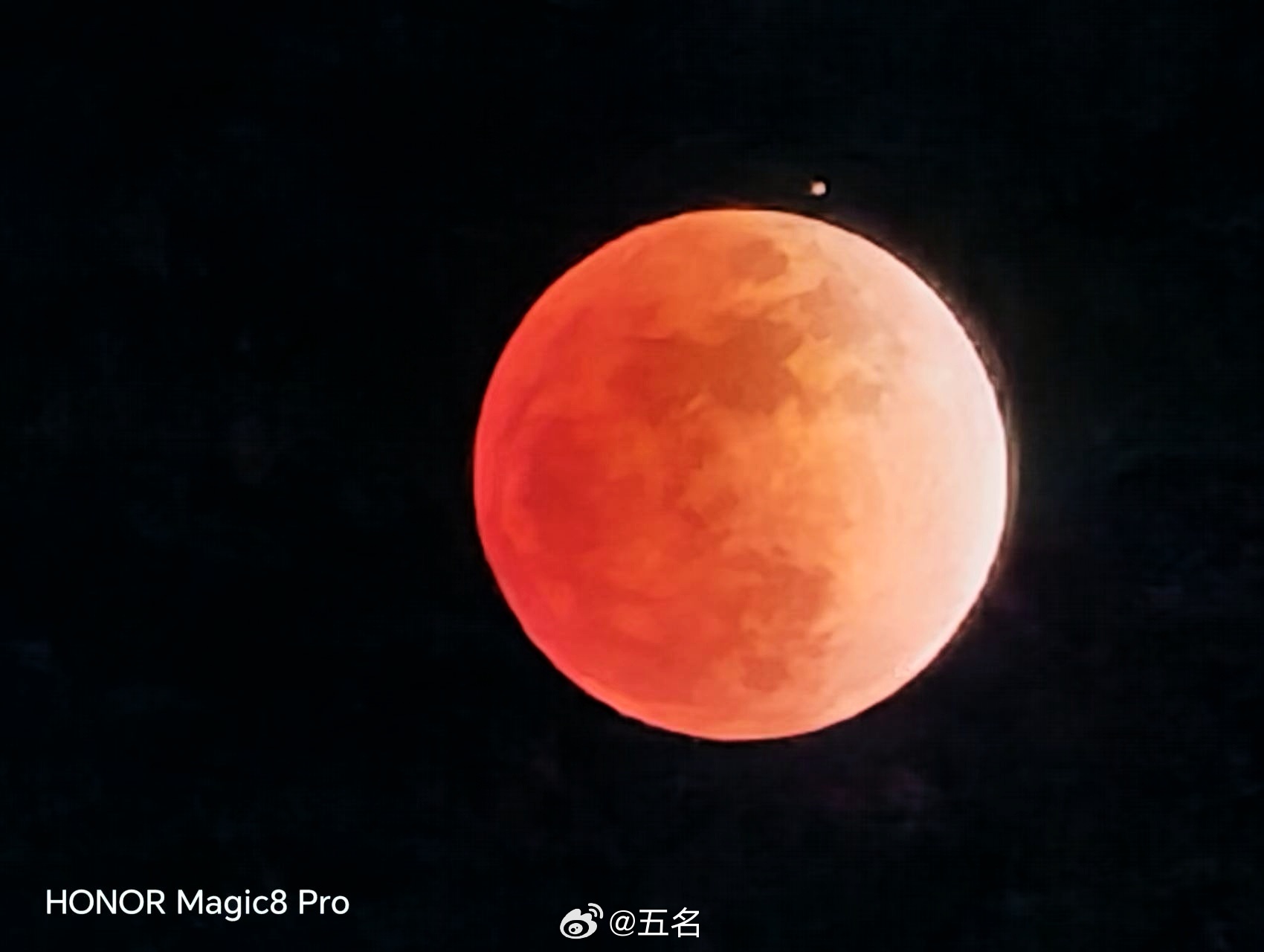 元宵遇月全食,荣耀Magic8 Pro荣耀Magic8RSR保时捷设计 联合深圳市天文台、摄影博主徐可意 在深圳、北京、河北,搭配增距镜专业影像套装,开启了一场浪漫的追月之旅。