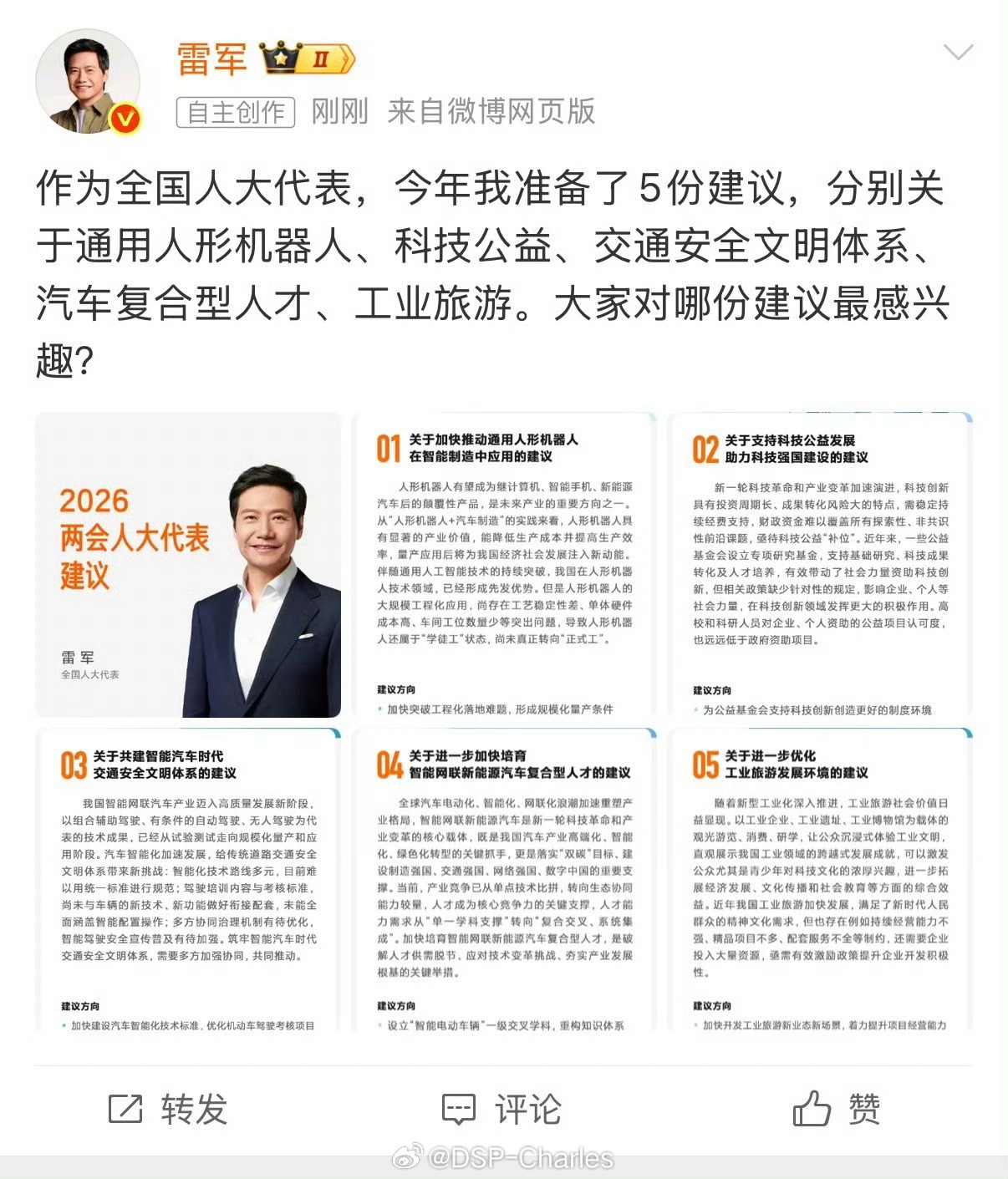 雷军建言加快人形机器人规模化量产