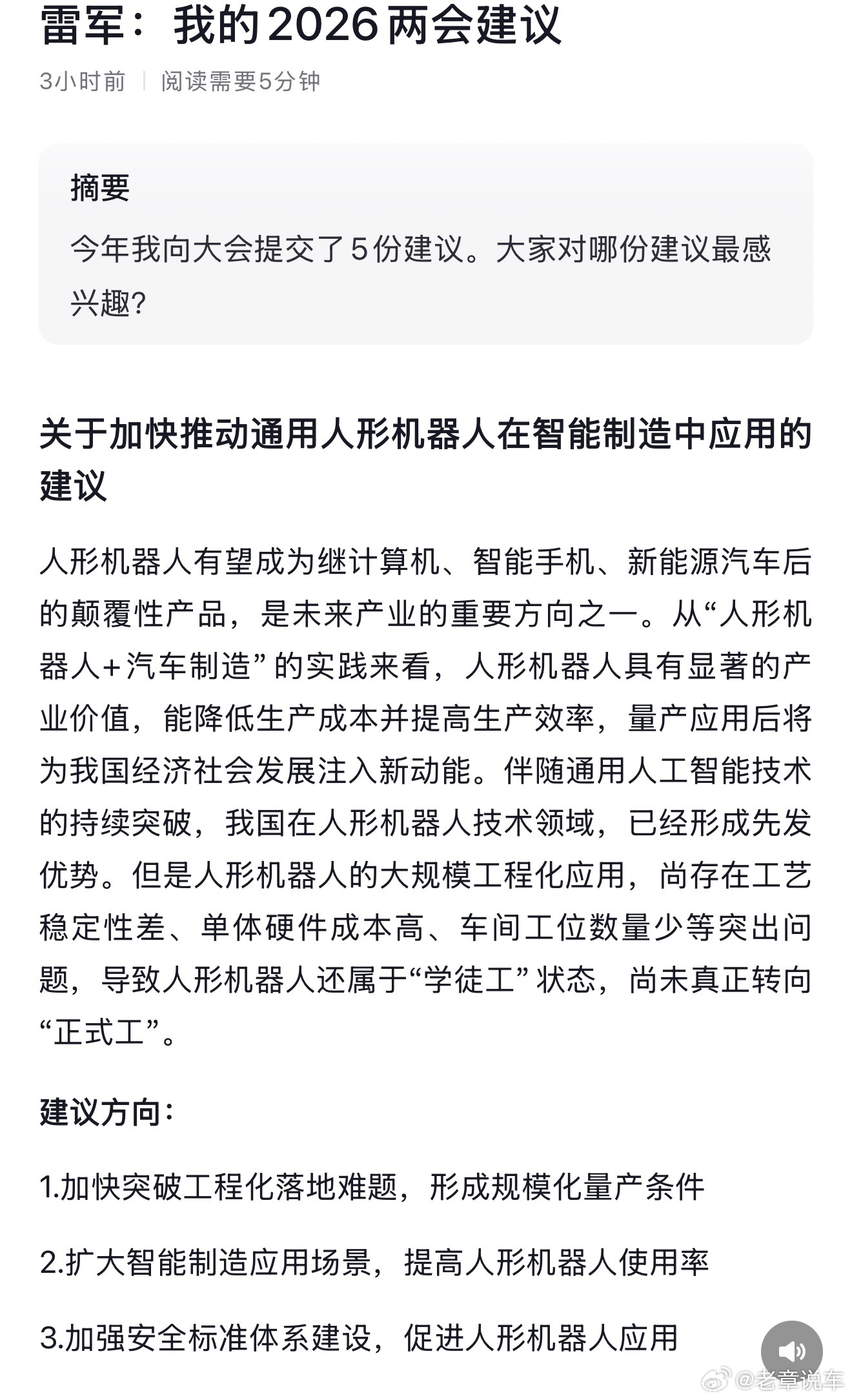 雷军的两会建议!