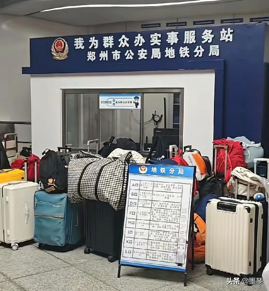 我就佩服当代大学生,我们祖国的未来全靠他们啊![呲牙] 这画面确实太有感染力了!郑州地铁这个“我为群众办实事服务站”门口,开学季大学生们把行李往这儿一撂,人就去忙别的了,这种绝对的信任,真的是当代社会安全感的一种生动体现。 咱就是说,这行李放这里要是丢了,你们猜警察叔叔会怎么样?[笑哭][笑哭][笑哭]