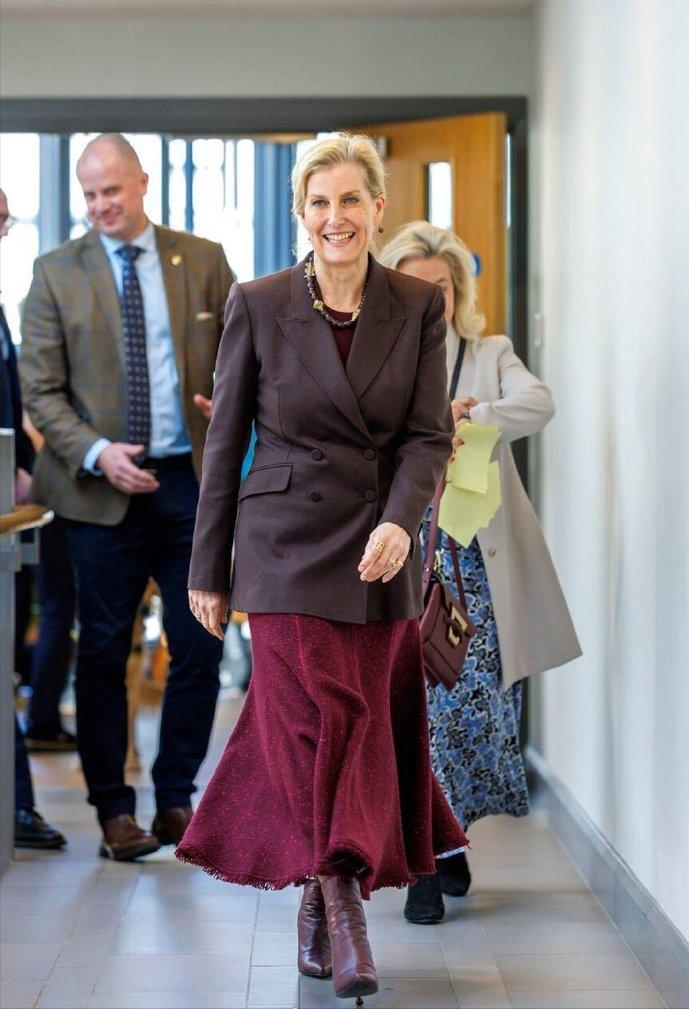 3月3日,爱丁堡公爵夫人苏菲在北爱尔兰贝尔法斯特访问布卢姆菲尔德社区中心。 公爵夫人穿着一身深咖色小西装,搭配酒红色半身裙,知性又优雅。 怼脸拍中,苏菲脸上虽然斑点清晰可见,但是整体状态很不错,皮肤光泽。笑起来的时候也满是活力,很阳光。 自从凯特王妃嫁入王室后,苏菲这位年长的婶婶对侄媳妇就很照顾,两人关系也非常不错,是长辈与小辈,也像王室闺蜜的亲密。 但是对比凯特王妃在经历了十几年的王室生活后,变得苍老不少,苏菲这位已经年过半百的婶婶却没什么变化,只有气质更好了,增添了岁月的韵味。
