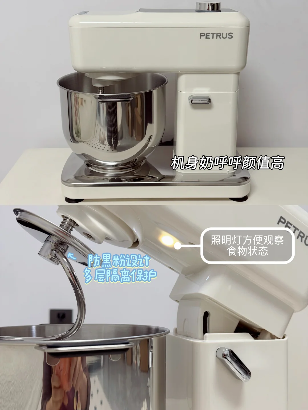 全能:7kg重+底部吸盘,揉面超稳不跑位,🉑揉面、搅拌、打发、还能 制面、压面