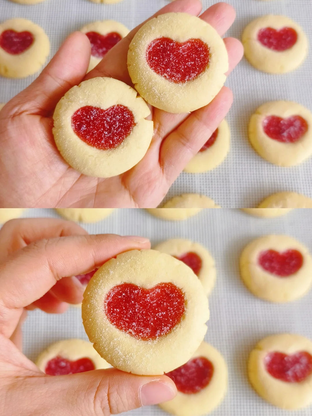酥到掉渣🔥无需模具超好吃的爱心果酱曲奇