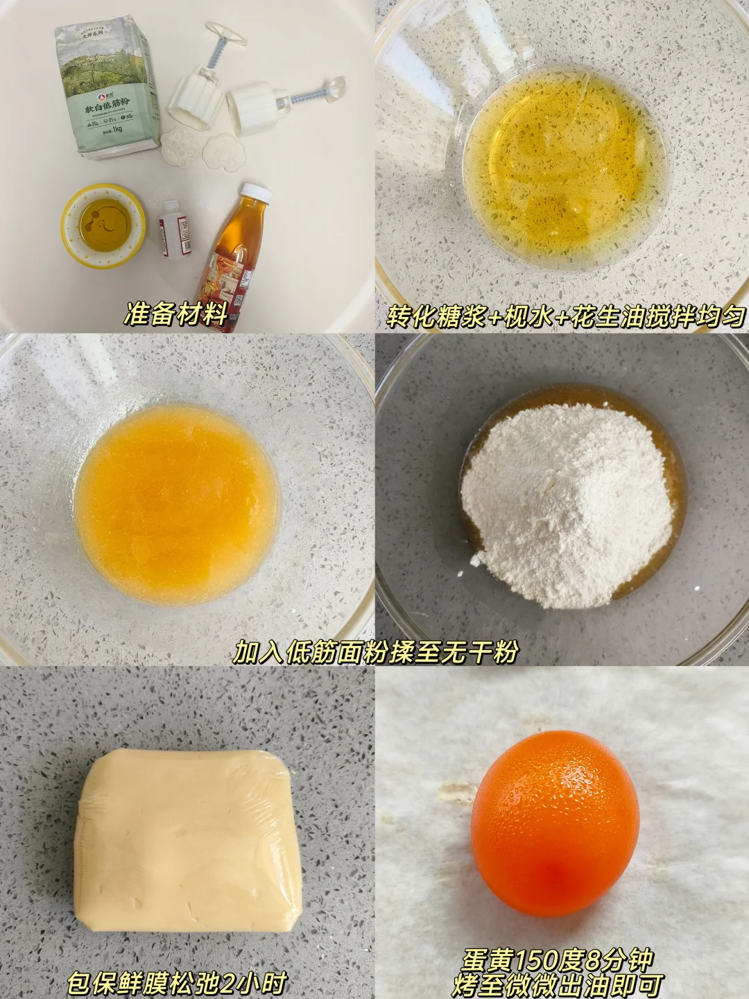 💓月饼糖浆135克,花生油50克,枧水4克,新良软白低筋粉200克