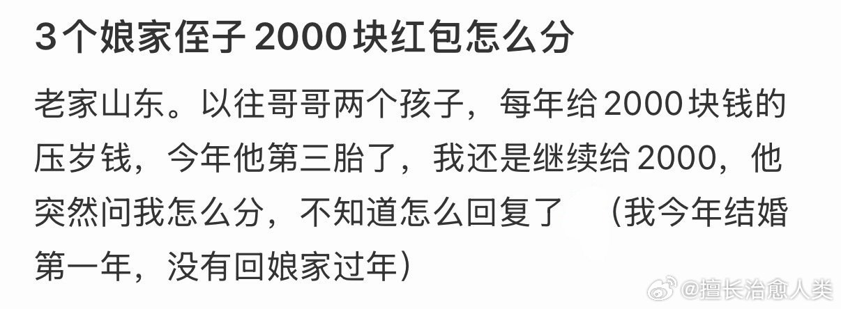 3个娘家侄子2000块红包怎么分