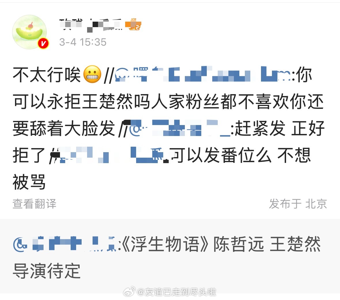 两个瓜主发《浮生物语》这个预告都是陈哲远在前,A瓜主问能不能发番位以后把骂他的女