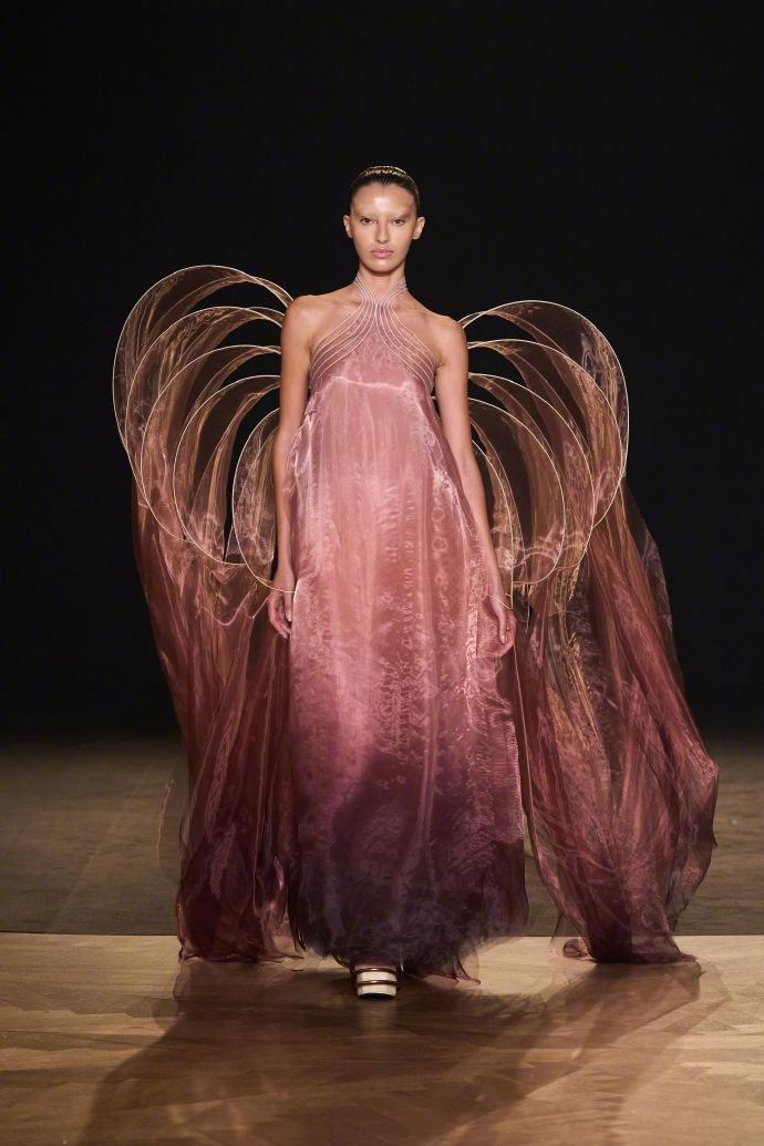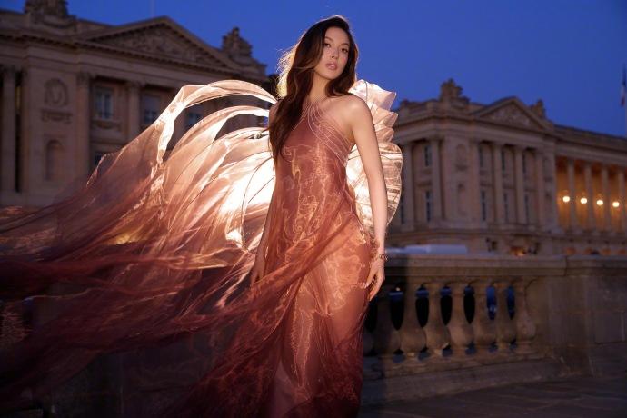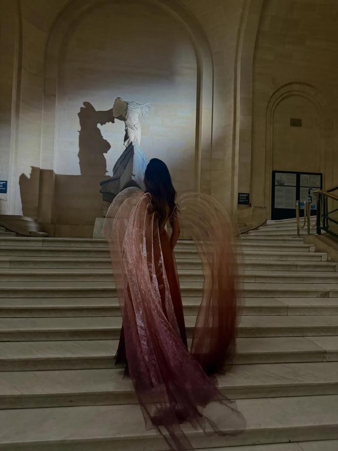 谷爱凌在巴黎出席“Le Grand Dîner du Louvre” 晚宴,一身天使款礼服可圈可点,光彩照人,这次真的被谷爱凌狠狠美到了。 谷爱凌的这身肉粉色礼服来自Iris van Herpen2025 秋冬高定礼服,感觉设计师早就应该找谷爱凌代言了。 比起卖家秀里的模特展示照,谷爱凌高挑的身材,精致的五官,贵气独特的气质,真是把这身礼服完美展现,妩媚动人。 看到谷爱凌的这组照片,只想大呼“太美啦”!