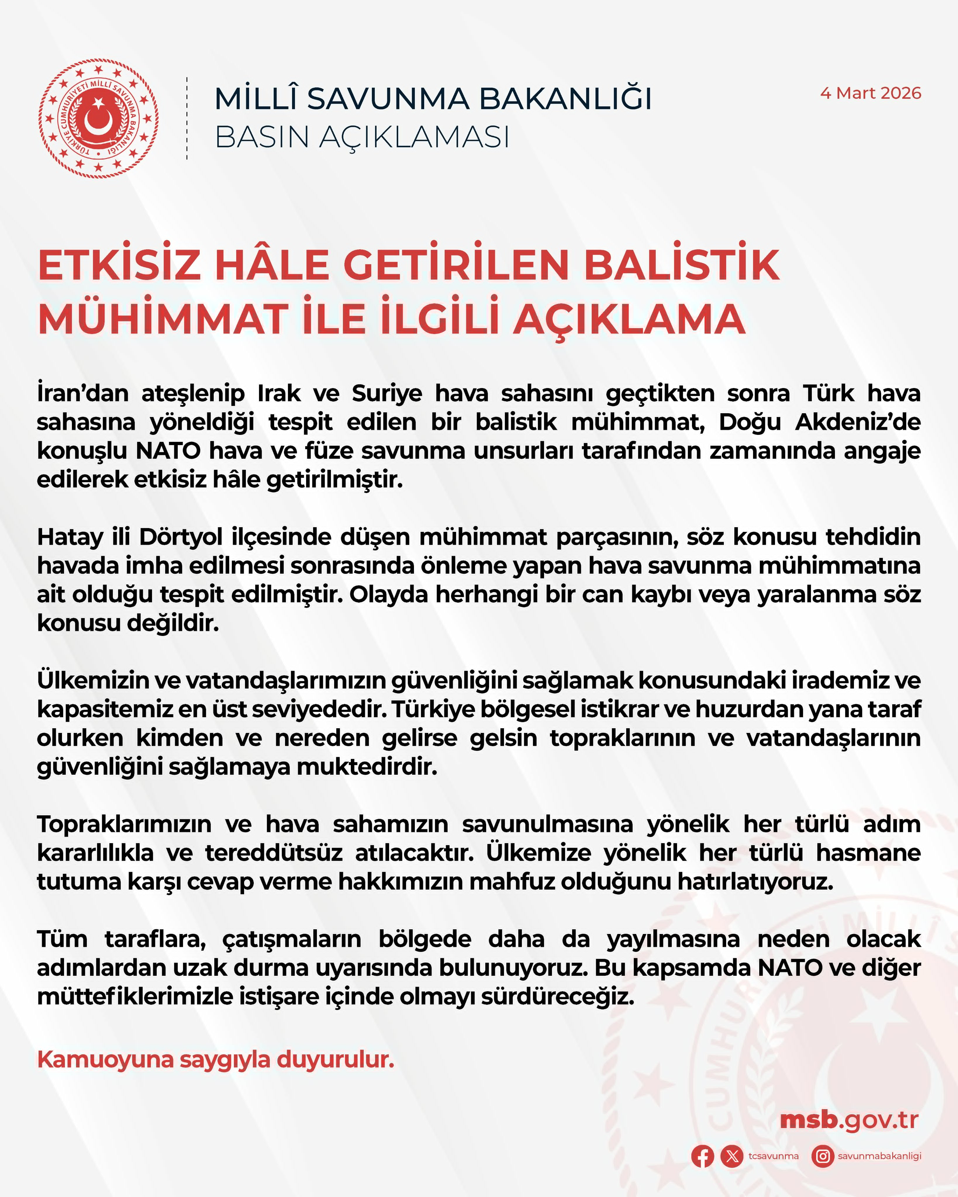 同时表示,土耳其将毫不犹豫地采取一切必要措施捍卫领土和领空,保留对任何针对我国的敌对行为作出回应的权利,并警告各方避免采取任何可能进一步加剧地区冲突的行动。