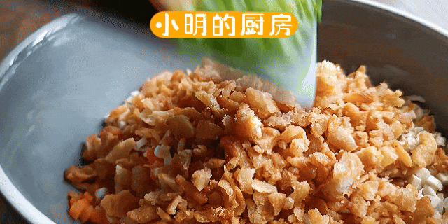 6、接下来准备些食材做馅料,面发好后包包子用,一根胡萝卜去皮洗干净给它切丁,几个香菇同样切成丁,全部切好后放在一起,接下来准备一点提前熬好的油渣,把它切成小块,有油渣的包子馅是我记忆中最深的一种美味,小时候妈妈经常熬猪油,剩下的油渣都拿来和馅,那个味道也让我永远记忆深刻。