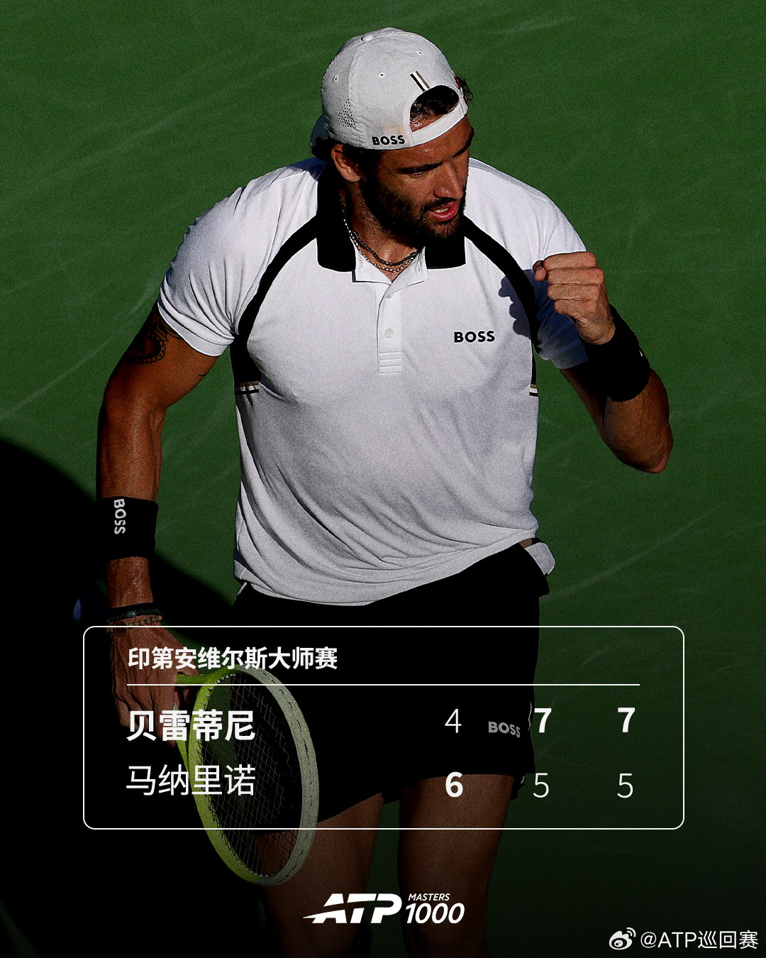 ATP1000 印第安维尔斯大师赛男单首轮,贝雷蒂尼4-6 7-5 7-5逆转马纳里诺,和对手三次交手取得首胜,第二轮他将和4号种子兹维列夫上演焦点对决!
