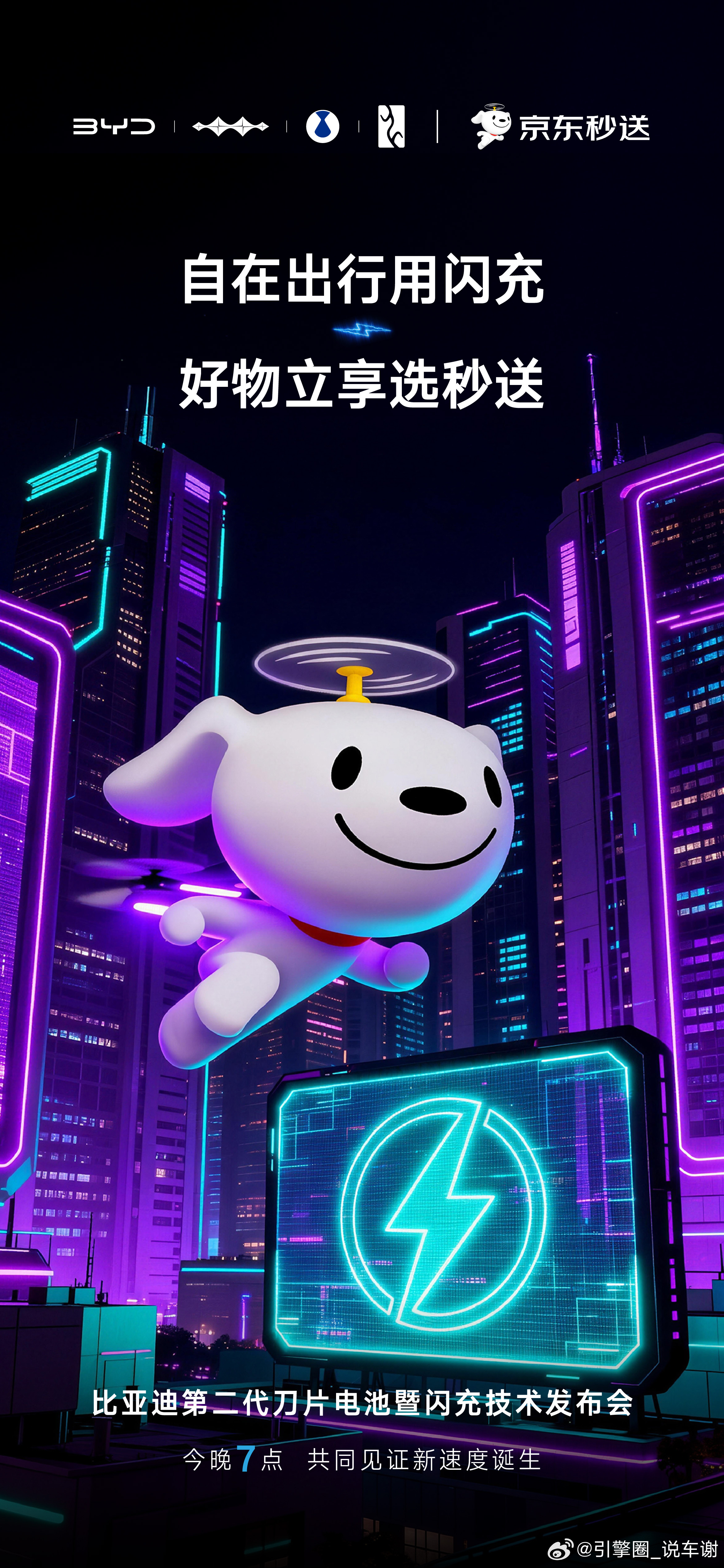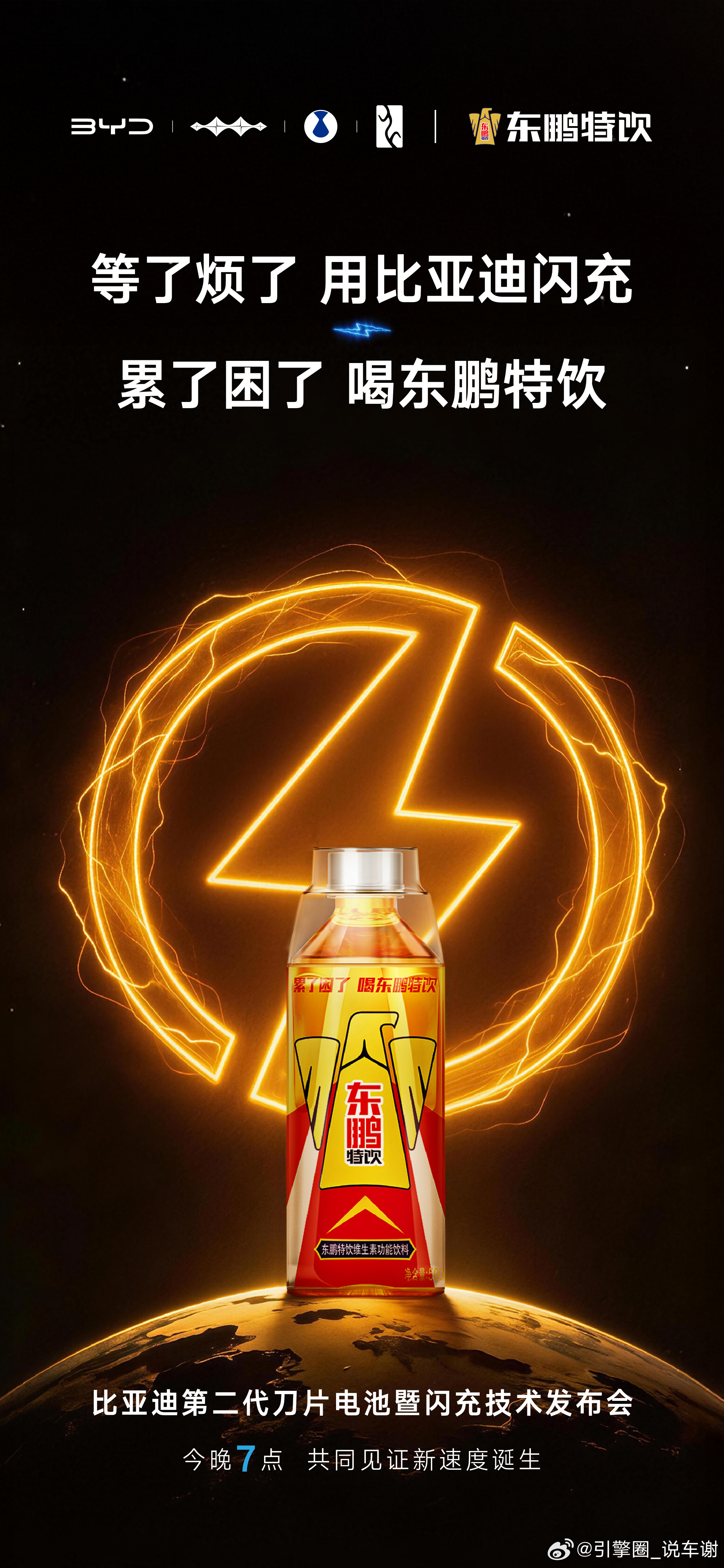 比亚迪动静不小,联合中国电信、OPPO、顺丰、支付宝、科大讯飞、京东秒送、东鹏特饮、佳通轮胎、鸿星尔克,共倡以极致速度,让美好生活不再等待!今晚 19:00,比亚迪第二代刀片电池及闪充技术。
