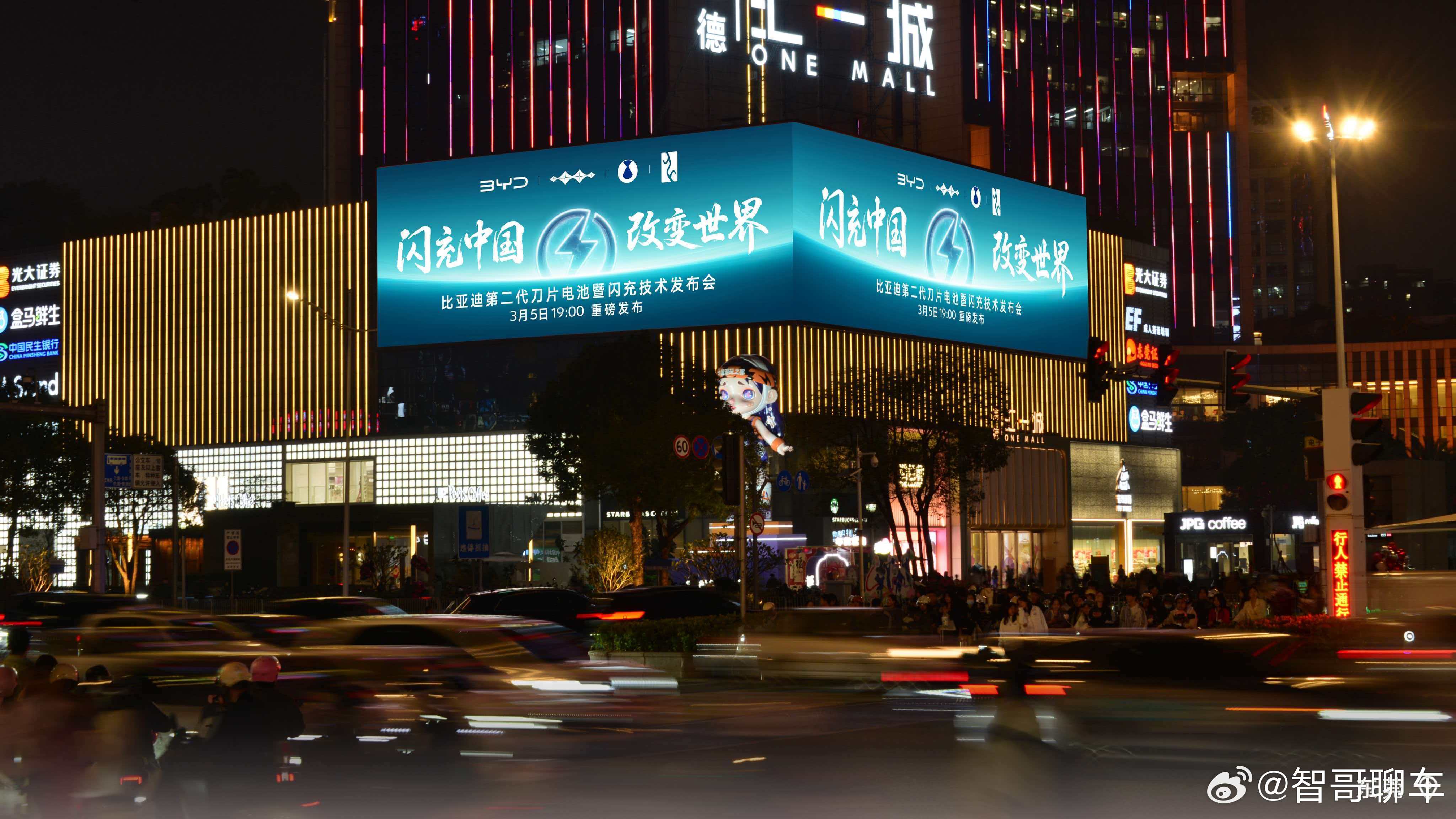 闪充中国,改变世界比亚迪第二代刀片电池及闪充技术点亮全国多城CBD地标大屏今晚1