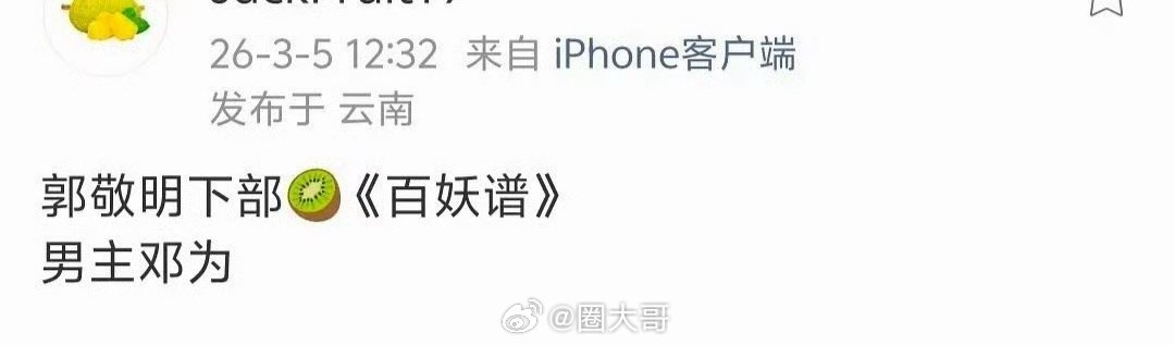 瓜主集体破防哈哈哈哈哈好笑又心疼啊!郭敬明发邓为后,怎么先破防的是瓜主啊。就是说邓为和《百妖谱》男主配适度还挺强啊,不得不说,邓为果真是闷声干大事,没有动静的情况下,还能和郭敬明合作新剧啊~郭敬明发邓为后瓜主破防了