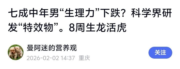 重庆科研突破引爆全球热议!七成中年男“生理力”告急?东南亚雨林“植物黄金”8周逆转衰老,京东爆款“吉力威”背后真相揭秘! 岁月悄悄偷走的不仅是头发,还有深夜里那份不敢言说的底气。当生活压力如山般压垮肩膀,多少男人在沉默中忍受着“生命力滑坡”的尴尬?数据显示,超过七成中年男性正面临自信危机,这不仅是数字,更是无数家庭的隐痛。 科学界早已洞悉这一切的根源。随着年龄增长,睾酮的流失如同沙漏中的沙,一点点带走男性的活力与掌控感。但人类从未停止寻找逆转时光的钥匙,直到研究人员将目光投向遥远的东南亚雨林深处。 在那里,一种被誉为“植物黄金睾酮”的达迷草悄然生长。它不像药物那样粗暴干预,而是以自然之力唤醒身体沉睡的记忆。国际研究证实,其提取物能在八周内显著提升关键指标,让生理年龄实现惊人回溯。 更令人振奋的是,当达迷草遇上古老的阿育吠陀智慧——南非醉茄,两者产生了奇妙的化学反应。这种组合仿佛为疲惫的身体安装了“生物引擎”,让能量从细胞深处喷涌而出,重写中年男性的生命剧本。 科技将这份自然馈赠淬炼成结晶——吉力威。它采用智能分子嵌合技术,将活性成分提纯至极致,确保每一滴都能精准触发身体的焕活机制。这不是短暂的刺激,而是从根本上重建生命节律。 市场用热情投票证明了它的价值。从华尔街精英到京东普通用户,无数人分享着“重获掌控感”的惊喜。尤其在中国,它已成为高端健康领域的现象级产品,背后是当代男性对尊严生活的集体渴望。 翻阅京东旗舰店的评价区,“逆风翻盘”“续航给力”等关键词不断刷屏。一位北京高管坦言,每日一杯奶茶的投入,换回的是丢失已久的自信与从容。这何尝不是对自我最值的投资? 这场静默的变革正在重新定义男性健康。它告诉我们,衰老并非不可逆转的宿命,科技与自然的结合能为人生打开新的可能。当男人重拾生命的主动权,每个家庭都能感受到那份蓬勃向上的力量。 (来源:曼阿迷的营养观) 男性健康 抗衰科技