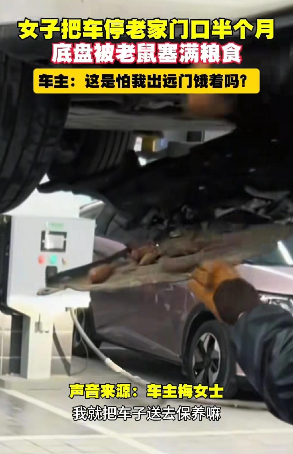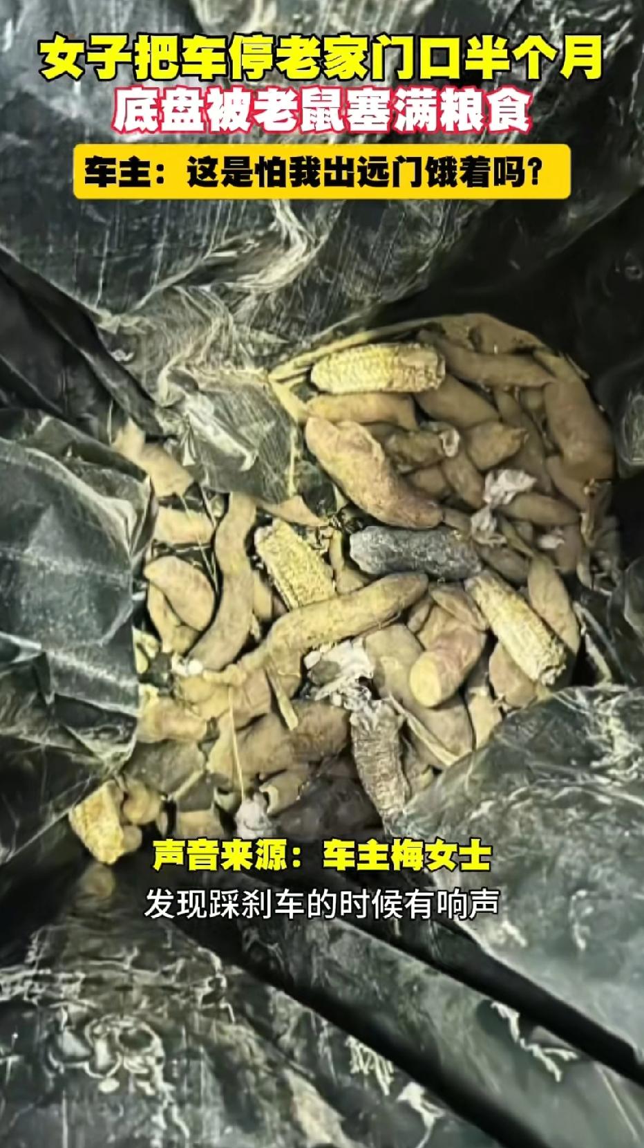 广西贵港,女子把车停在老家半个月,等她用车时,发现车底突然传来一阵奇怪异响。她慌了,以为发动机出了大问题,连忙送去检修,维修人员拆开底盘,发现里面塞满了20斤玉米和红薯。女子又气又笑:这哪是车坏了,分明是老鼠把她的车当成专属粮仓了! 梅女士因为有事要外出,就把自己的家用车停在了老家的院子里。 她当时也没多想,觉得就停半个月,应该不会出什么问题,锁好车门就放心离开了。 等她再次回到老家,准备开车出门的时候,刚一上车启动,还没开多远,一脚刹车踩下去,立刻听见车底传来一阵奇怪的“咔咔”声。 这一下可把梅女士吓了一跳。 她一开始以为是自己听错了,又轻轻踩了几下刹车。 结果响声越来越明显,听起来就像是有什么东西卡在底盘下面,一刹车就互相碰撞,听得人心里发慌。 梅女士越想越担心,刹车可是车上最重要的安全部件,万一刹车失灵,后果不堪设想。 她当场就不敢再开了,心里七上八下,满脑子都在想:是不是刹车坏了?是不是零件松了?会不会要花大价钱大修? 越想越害怕的梅女士,不敢有丝毫耽误,立刻联系了维修店,小心翼翼地把车开到店里检查。 她一路上都提心吊胆,生怕半路出问题,原本十几分钟的路程,开得比一个小时还漫长。 到了维修店,师傅听完梅女士的描述,马上开始检查。 先是简单听了声音,又趴到车底下看了看外观,没看出明显的破损。 为了找到问题根源,师傅决定把车升起来,拆开底盘护板仔细检查。 梅女士就在旁边紧张地等着,心里已经做好了要换零件、花钱维修的准备。 可当师傅把护板拆开的那一刻,在场的人全都愣住了。 原本以为会看到损坏的零件、松动的螺丝,甚至漏油的管路,结果眼前的景象让所有人哭笑不得。 车子的底盘缝隙里,竟然被塞得满满当当,全是晒干的玉米和红薯! 师傅一点点往外清理,越清越多,最后整整清出来差不多20斤的粮食。 金黄的玉米棒、一块块的红薯干,把底盘的空隙填得严严实实,难怪梅女士一踩刹车就会有异响。 原来是刹车的时候,车身轻微晃动,这些粮食在里面互相挤压、碰撞,才发出了奇怪的声音,根本不是车子坏了,而是被老鼠当成了“天然粮仓”。 得知真相的梅女士,当场又气又笑,一时之间都不知道该说什么好。 她回忆说,老家平时会晒一些玉米和红薯放在院子里,家里的粮食太多了,也没去留意少了那么多。 师傅一边清理,一边忍不住感叹,这么能囤货的老鼠实在少见。 好在发现得及时,这些粮食只是造成异响,没有咬坏线路、刹车油管等重要部件,不然麻烦就大了。 清理完毕之后,师傅又对车子进行了全面检查,确认所有部件都完好无损,梅女士悬着的心这才彻底放下来。 原本以为要花大价钱修车,最后只是虚惊一场,虽然过程有点吓人,但结局也算有惊无险。 《道路交通安全法》第21条规定:驾驶人驾驶机动车上道路行驶前,应当对机动车的安全技术性能进行认真检查;不得驾驶安全设施不全或者机件不符合技术标准等具有安全隐患的机动车 。 梅女士车停老家半个月、家里粮食多也没上心检查,没尽到法定安全检查义务 。 幸好她及时发现异响去修了;要是没检查就开,真出事故,法律上全是她自己担责,没人能替她背。 经过这件事,梅女士也提醒身边的朋友,尤其是住在乡下或者经常把车停在户外、粮食附近的人,车子如果长时间不开,一定要多检查,最好定期启动一下。 毕竟老鼠虽然小,但真要把线路咬坏了,或者把关键部位堵住,不仅会有异响,还可能带来安全隐患。