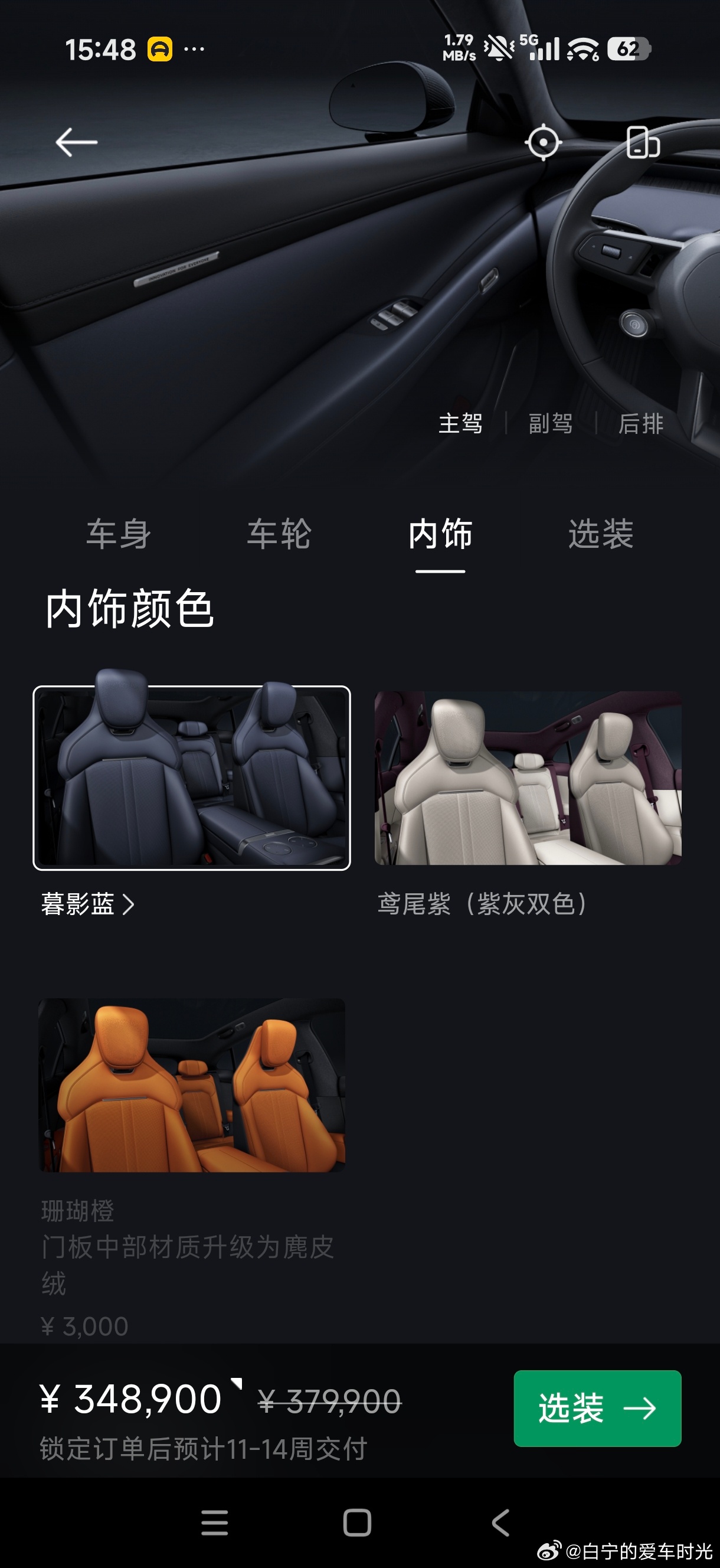 突然发现白宁的小米yu7 绝版了!现在影青色选不了白绿内饰了。这青色配白绿内多清