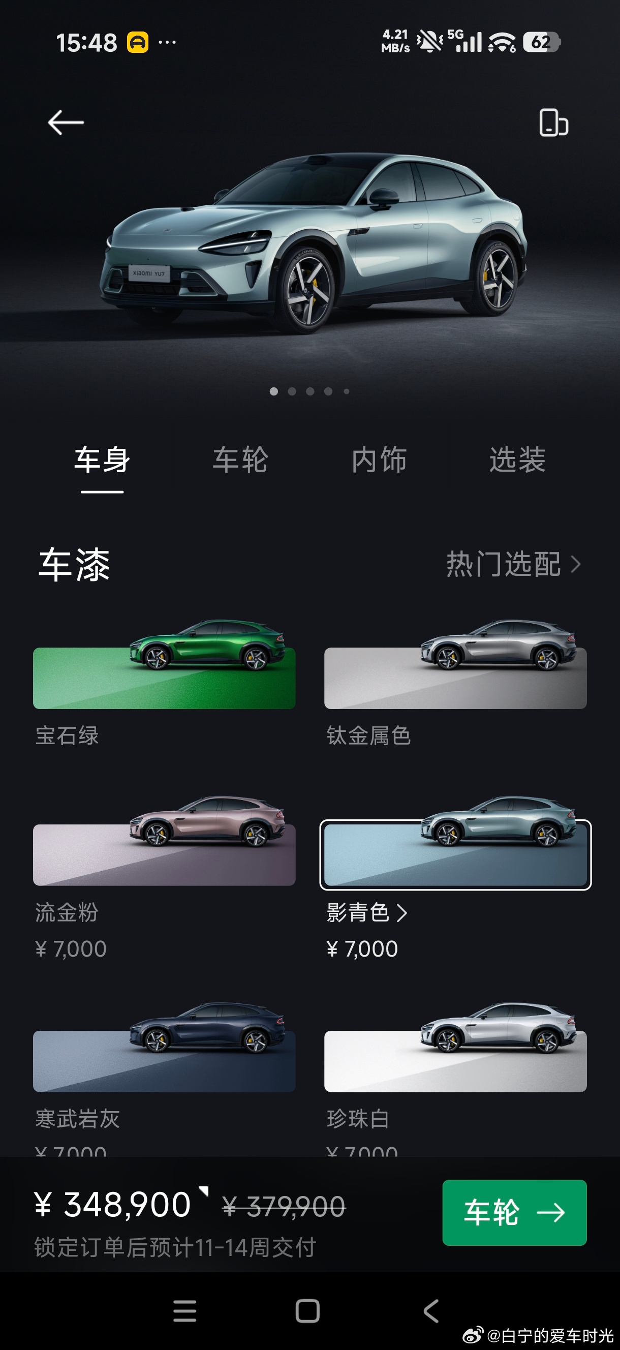 突然发现白宁的小米yu7 绝版了!现在影青色选不了白绿内饰了。这青色配白绿内多清爽多优雅啊。这回成了珍藏版了。