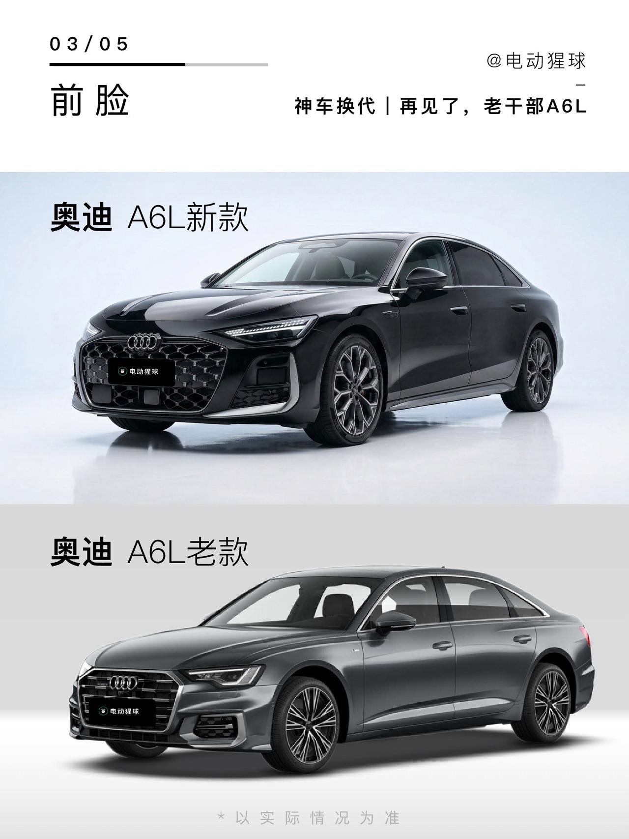 新车全新奥迪A6L的两款外观,黑色是雅致,蓝色是运动,这一代差距非常小了,我更