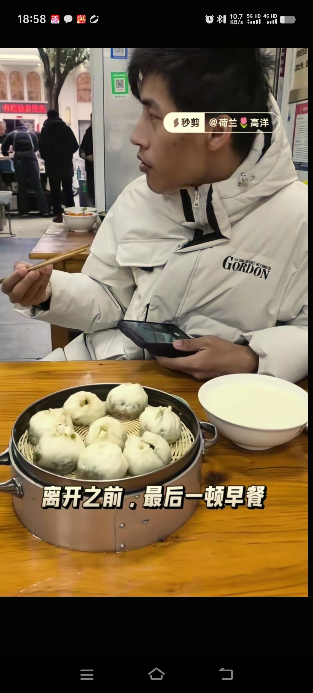 高洋完成了陪伴张云鹏回国团圆的使命,即将返回。这是他与张云鹏在国内吃的最后一顿早