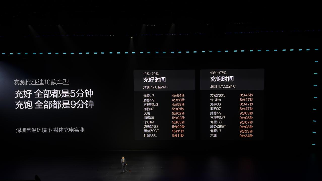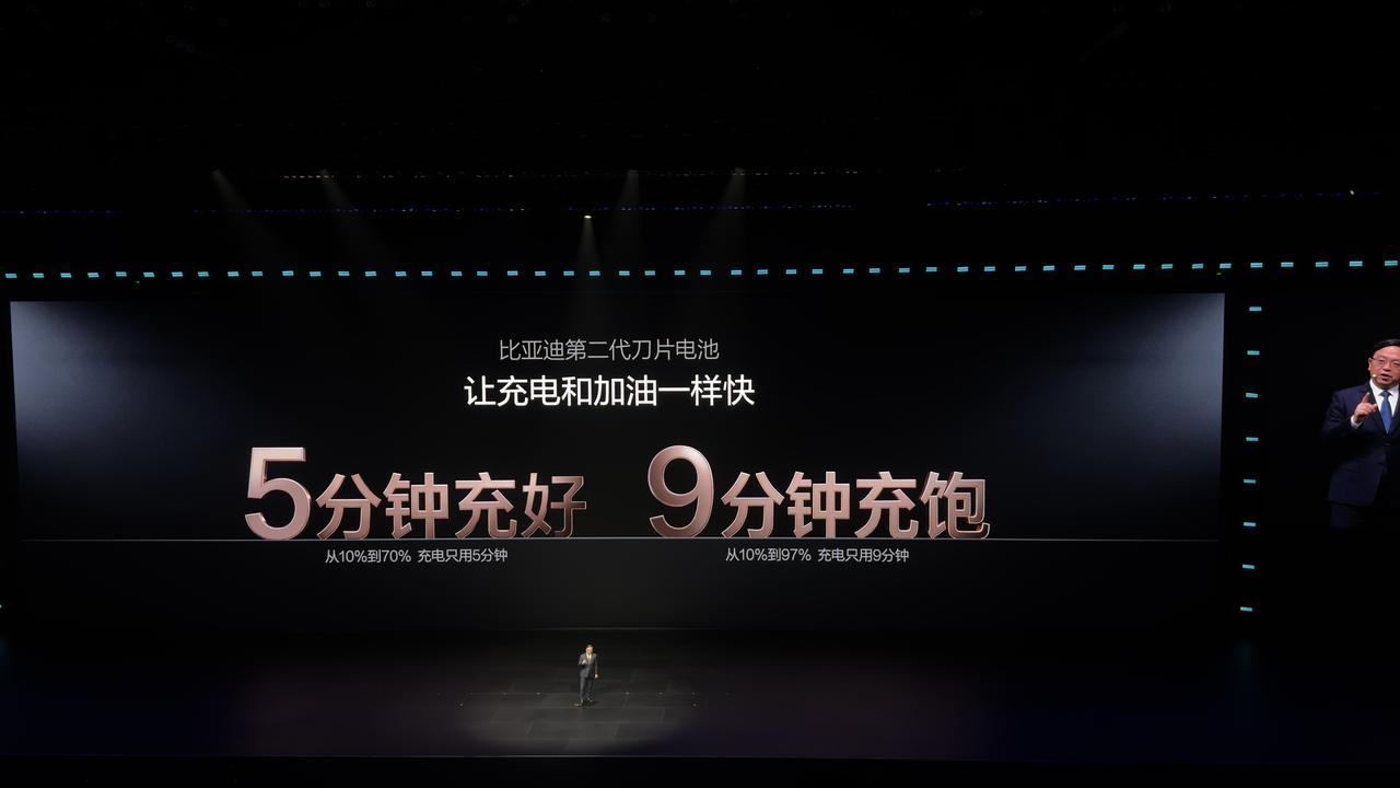 中国新能源汽车的渗透率持上涨趋势,但续航焦虑始终困扰车主,从油转电总是差那么一步。如果能实现充电和加油一样快,电动车就能回到燃油车的补能方式。 比亚迪第二代刀片电池从10%到70%只需要5分钟,从10%到97%只需要9分钟,仰望U7、腾势N9、钛3等多款车型经测试均在5分钟左右达到70%,真正做到充电和加油一样快,正如王总说的那句「没有人比我们比亚迪更懂电池」!