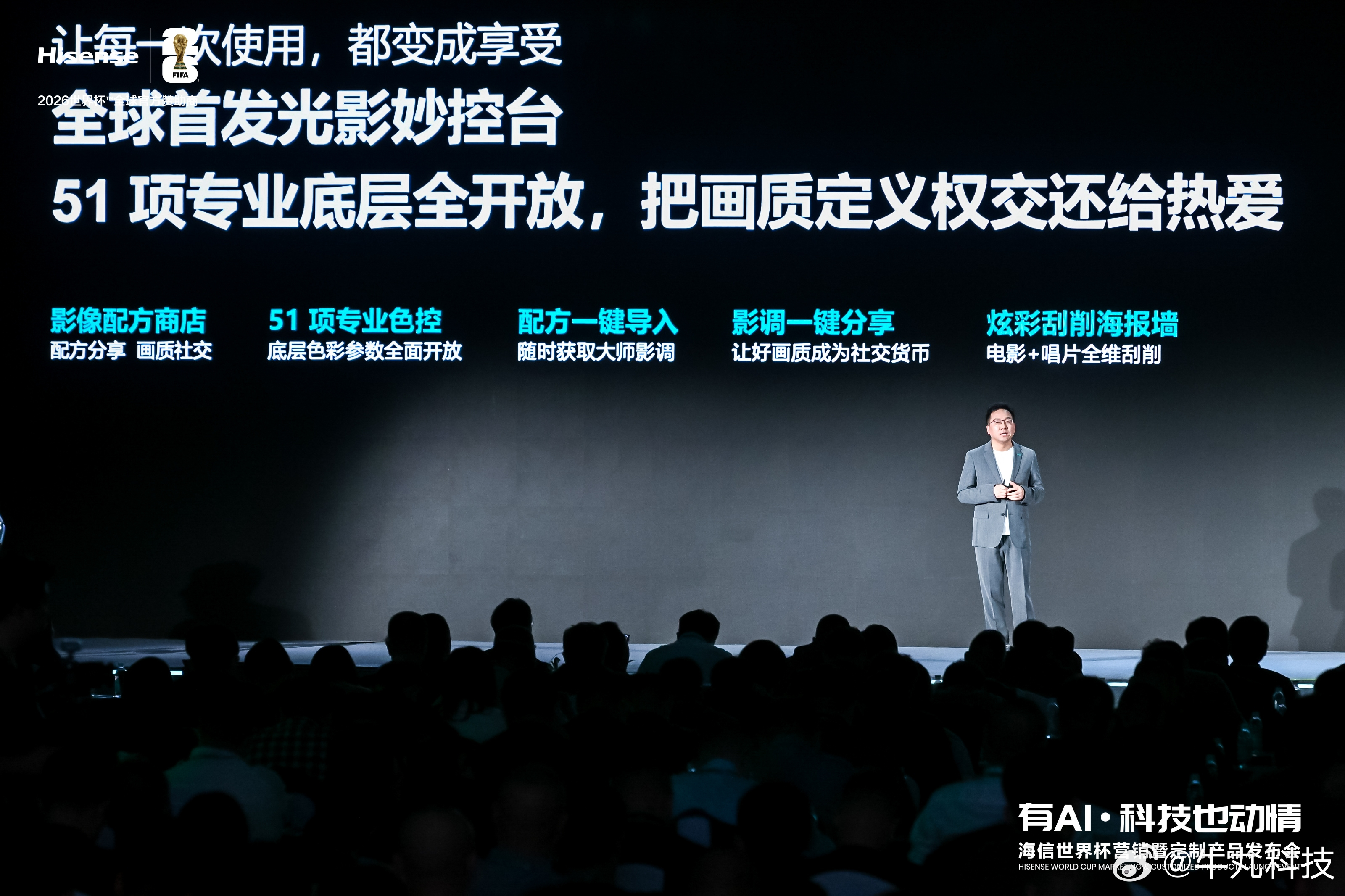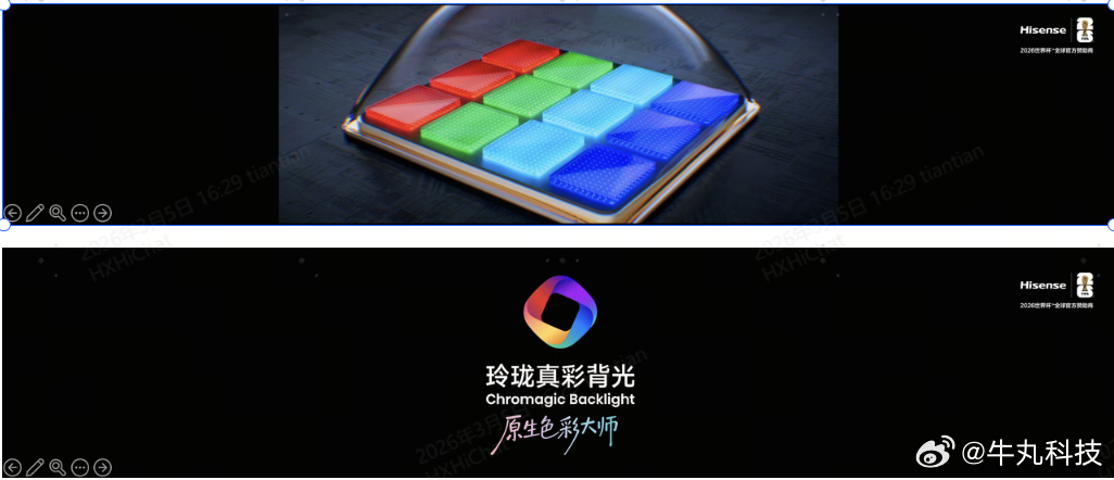 其核心搭载全球首创玲珑4芯真彩背光,加入天青色发光芯片填补光谱空白,配合四芯同控信芯AI画质芯片H7 Pro,实现110% BT.2020高色域、10000尼特亮度及134bits控色精度,相较行业顶级旗舰多呈现1.2亿种极限色彩,解决行业色彩相关痛点。
