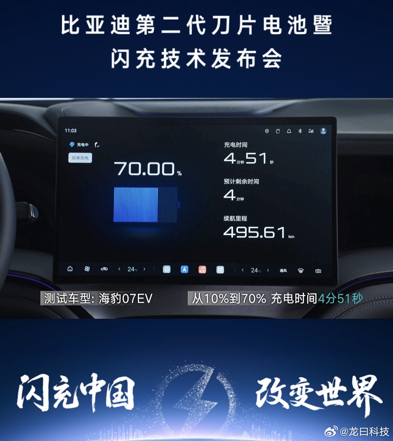 今天正式发布了比亚迪第二代刀片电池 。电芯能量密度超200Wh/kg,系统162Wh/kg,把磷酸铁锂的天花板又往上顶了一截。150度电,CLTC续航干到1006公里。充电也猛,10%到97%只要9分钟。首搭仰望U7,后续会下放到20万级甚至更低的主流车型。比亚迪今晚发布二代刀片及闪充