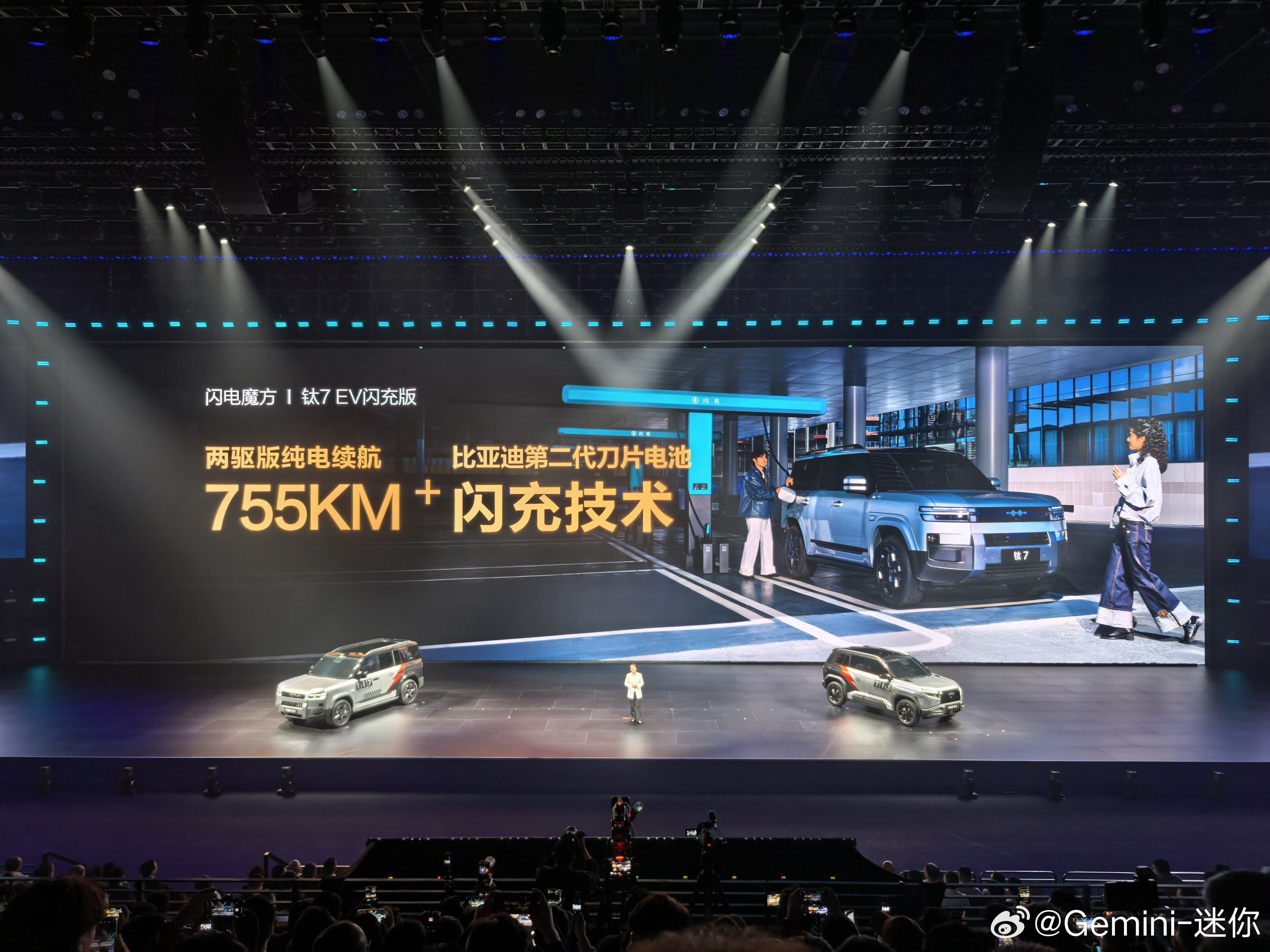 纯电续航,钛3是620km,钛7 EV两驱版是755km,具体的信息3月13日方程豹专场会向大家发布