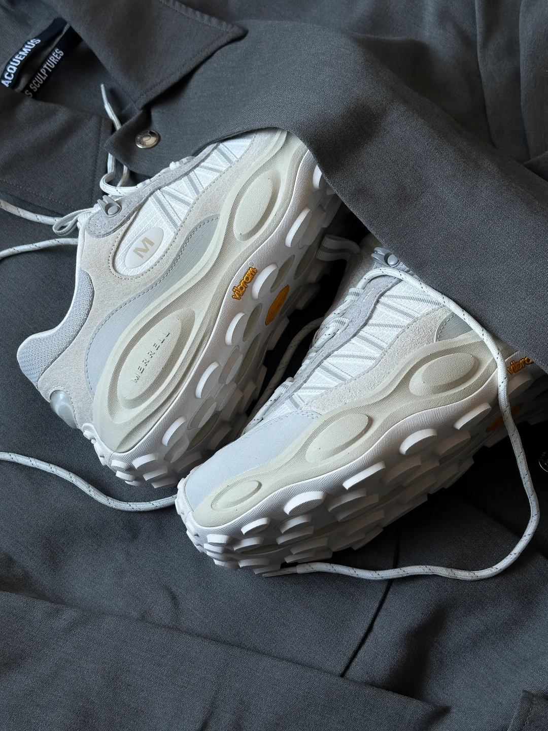 之前买过几双迈乐的鞋子,印象不错。感觉算是一个历史挺久的牌子,而且这么多年下来塑造了自己独有的特征,尤其很多产品都表现了户外的基因。 最近看到一双挺全面的MERRELL毒液行者,分享一下入手体验: 感觉是一双一周七天都能穿的鞋子,设计上本身就融入了户外徒步写的风格和时尚的都市感。 灰白色的整体色调看起来高智,织物、麂皮等多种材质拼接的鞋面既保证了轻盈,细看下细节感和高级感也很足。 特别是整个中底和外底的设计,特殊的Vibram点状结构,让这款毒液行者的防滑抓地效果出色。