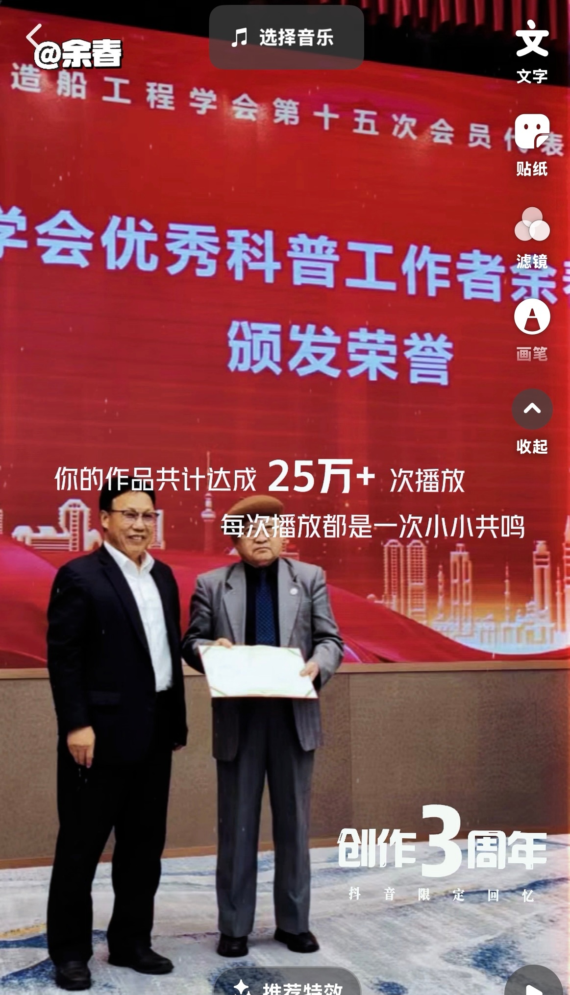 感恩抖音为我制作“创作3周年里程碑”专辑,十张珍贵画面,满是感动与温暖。