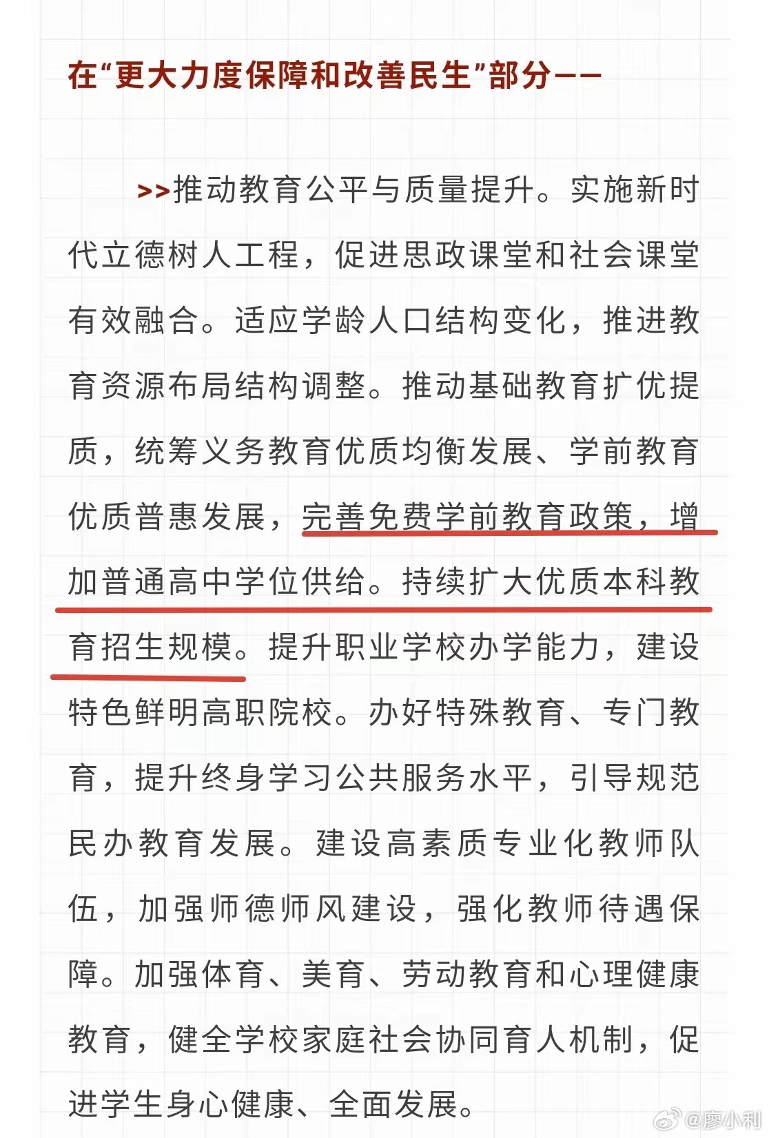政府工作报告中的新提法从政府工作报告透露的信息来看,今年高中扩招、大学本科扩招已