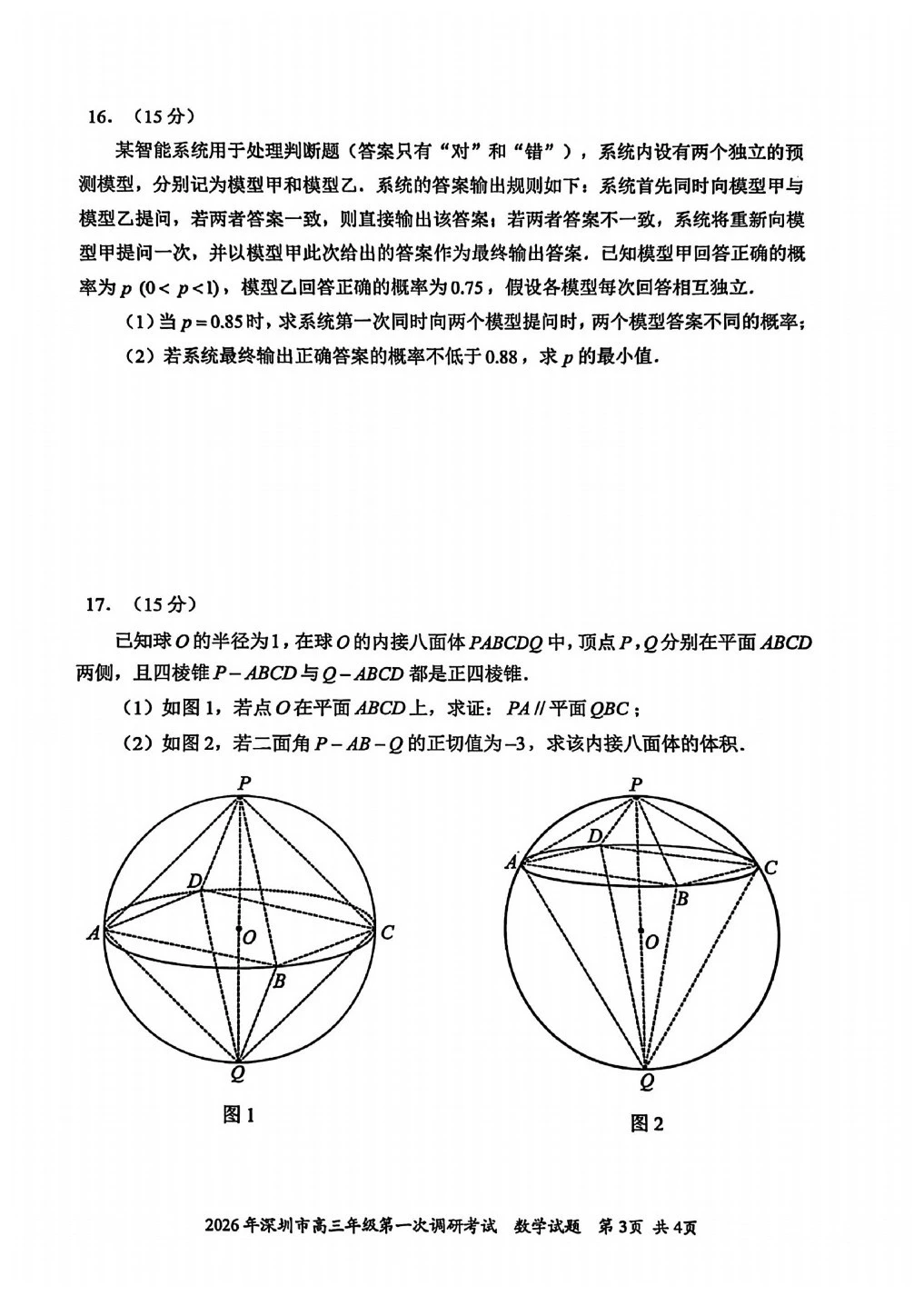 2026年深圳一模数学质量仍就是那么高