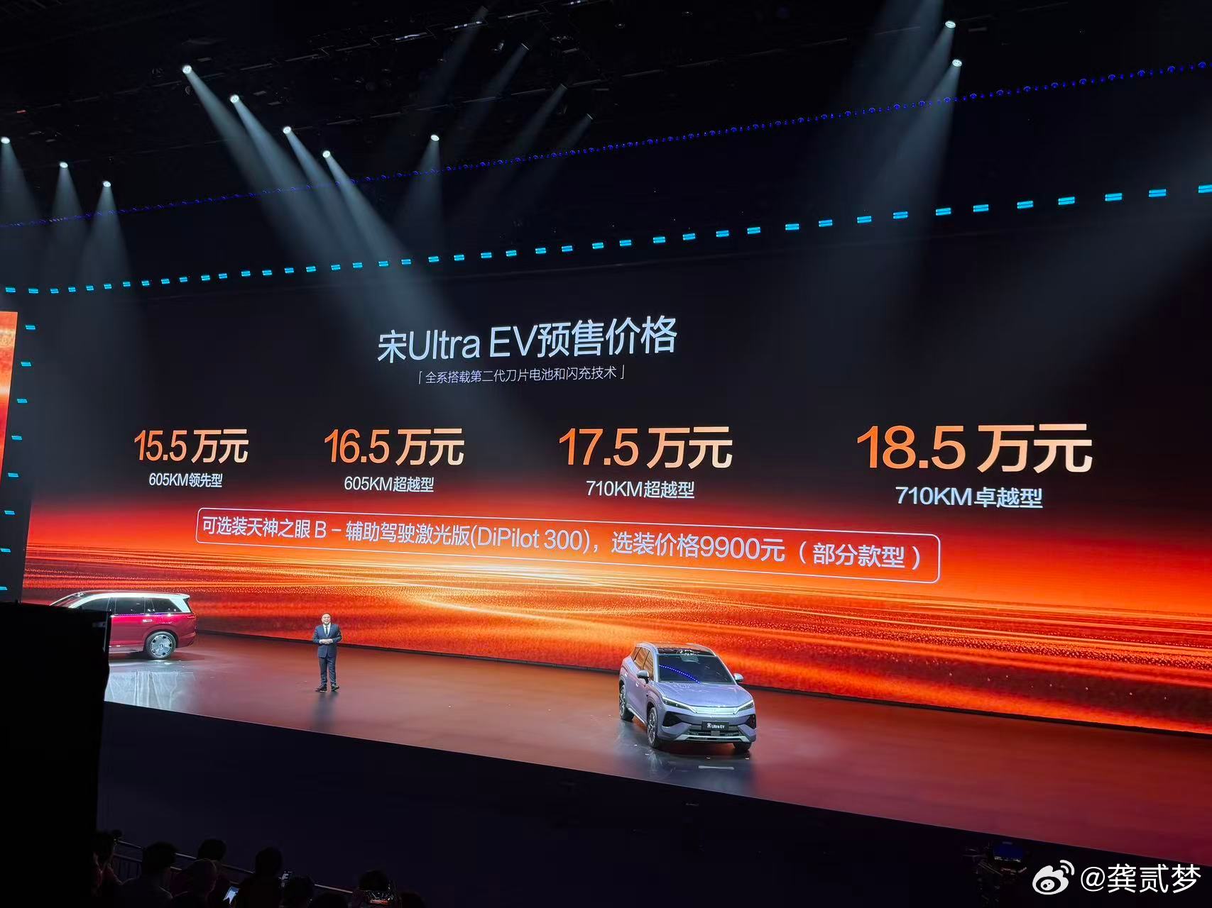 今晚王朝主打的宋Ultra EV,开局就上了闪充同样搭载比亚迪第二代刀片电池,710公里续航,基本就没什么续航焦虑了,所以用了一个词语来形容:松弛感~