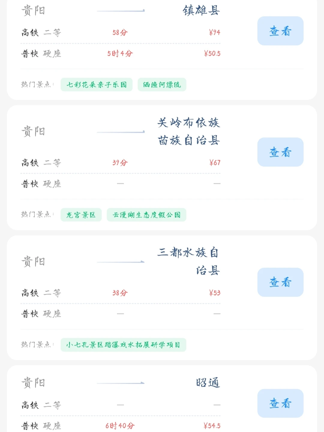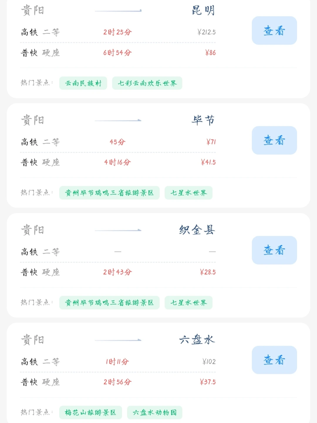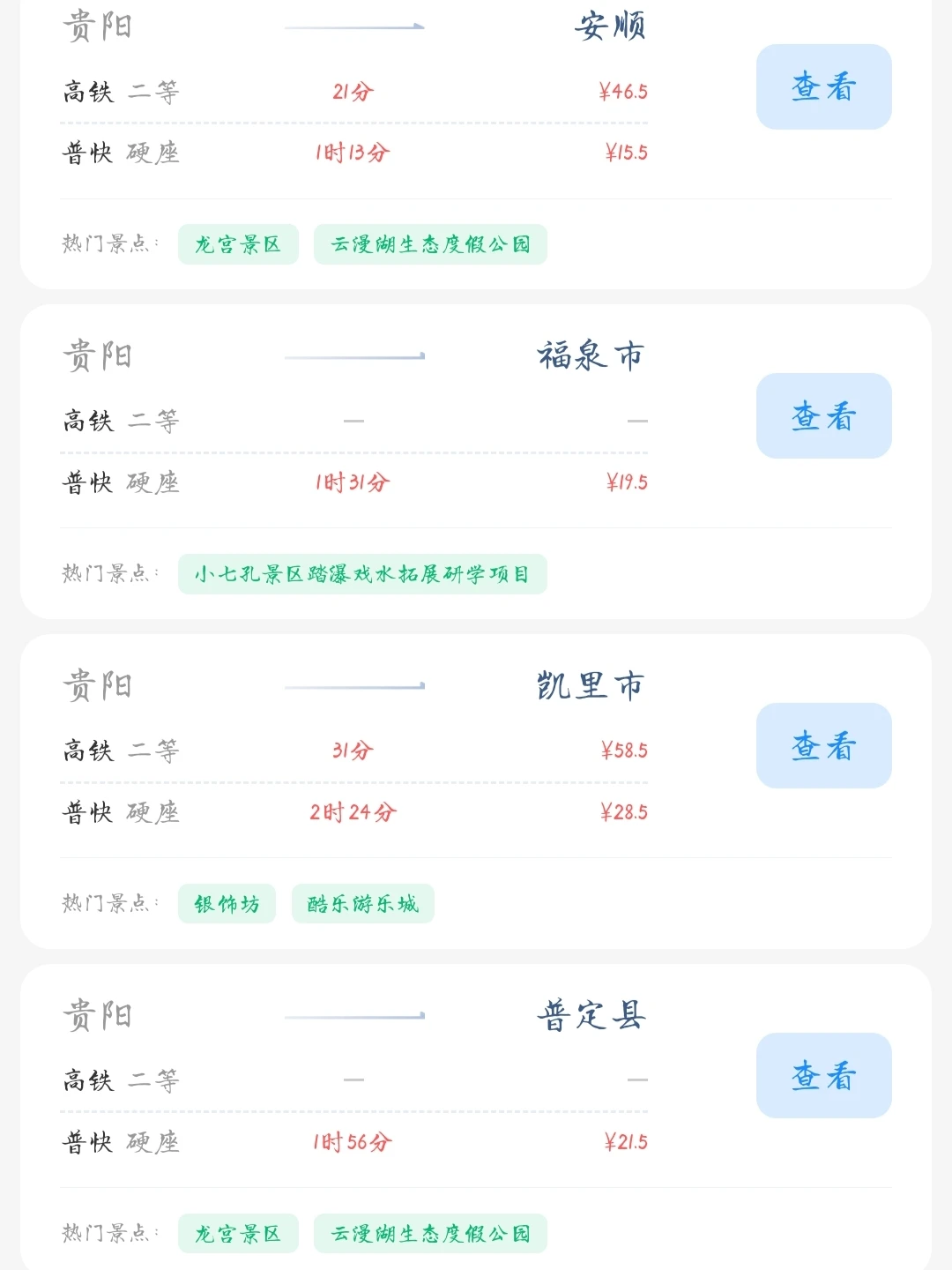 贵阳的大学生和打工人快看! 帮大家整理出来了在贵阳100块的火车票就能去的旅游城市 大家可以看看有没有自己想去的城市 刚好快到中秋国庆小长假了可以拉上家人朋友一起去玩[萌萌哒R]