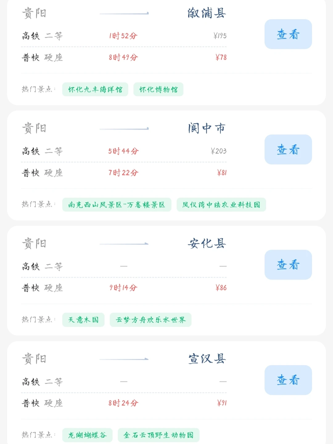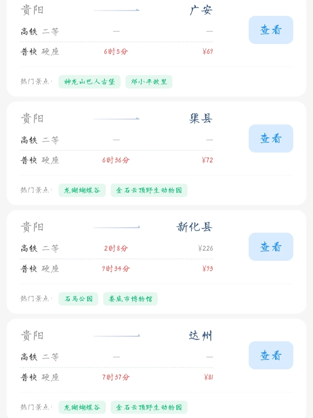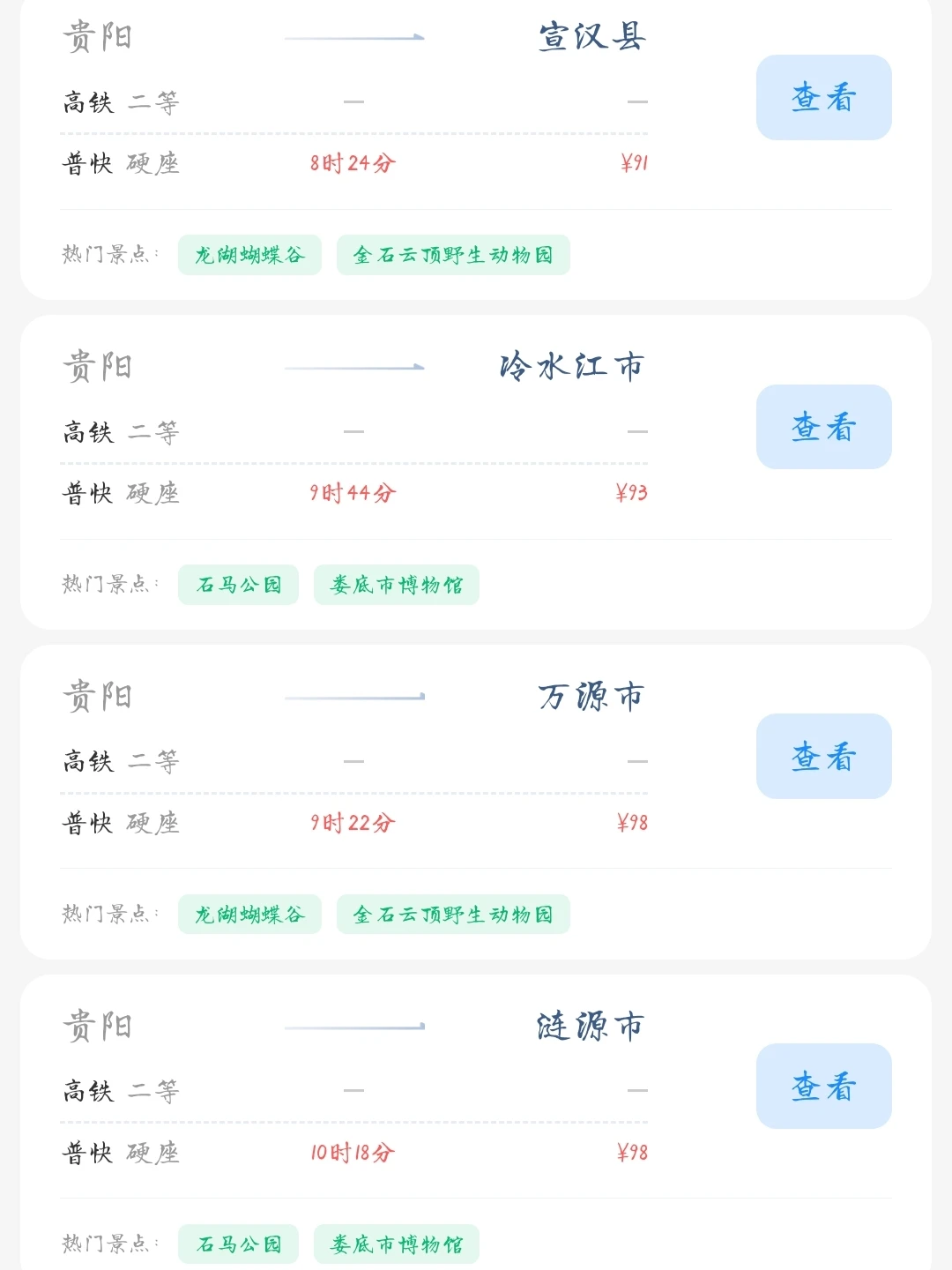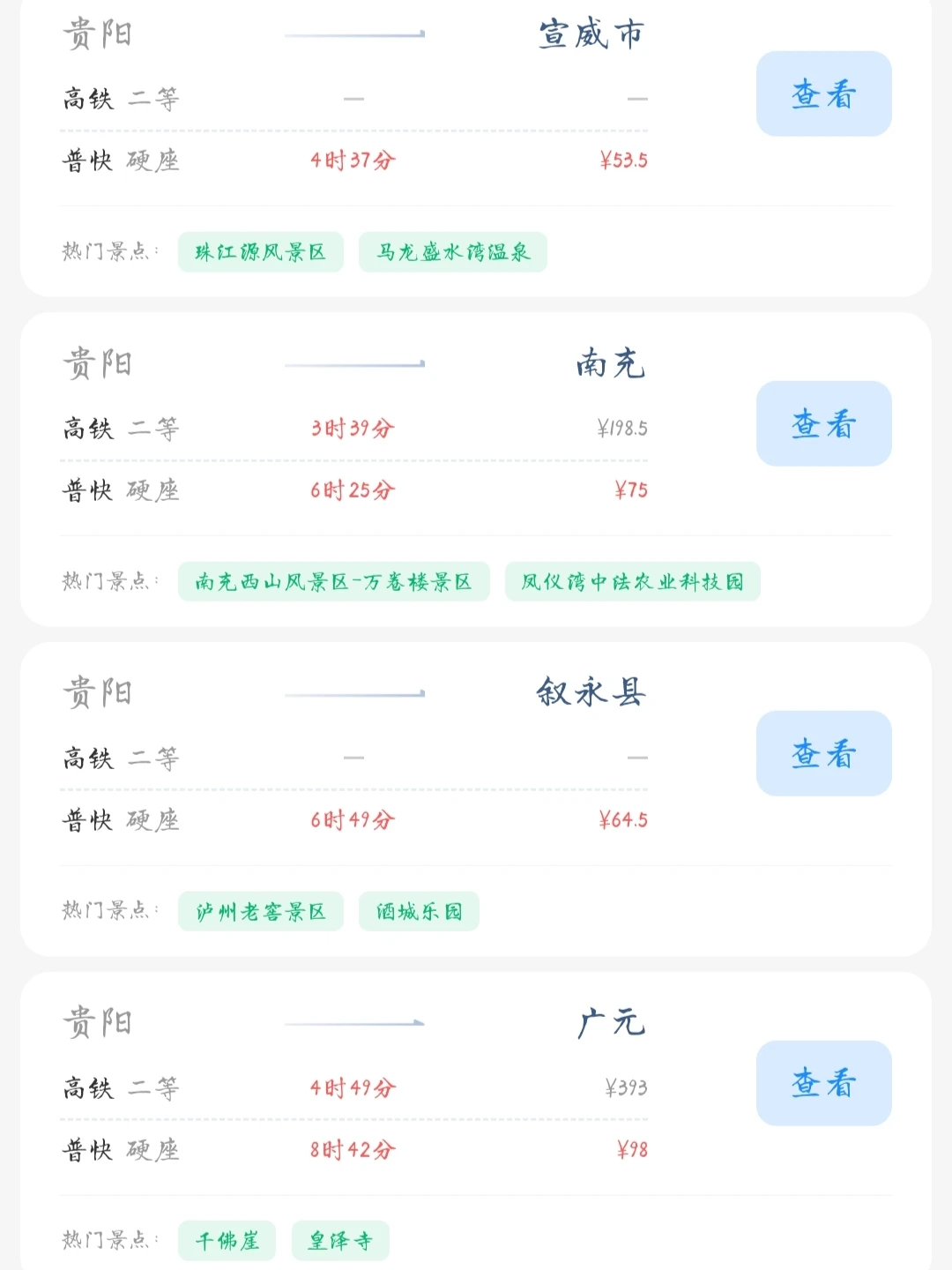 贵阳的大学生和打工人快看! 帮大家整理出来了在贵阳100块的火车票就能去的旅游城市 大家可以看看有没有自己想去的城市 刚好快到中秋国庆小长假了可以拉上家人朋友一起去玩[萌萌哒R]