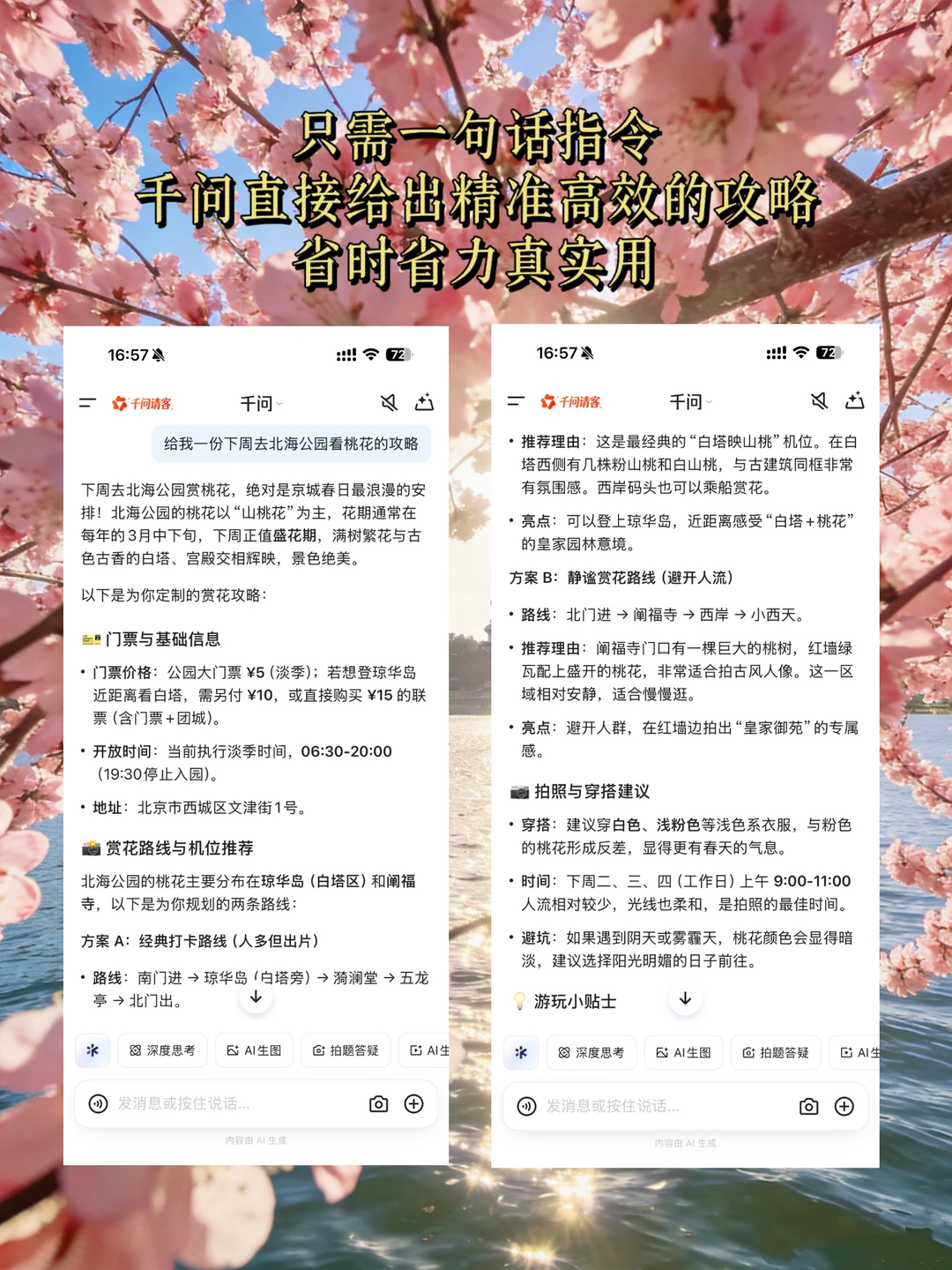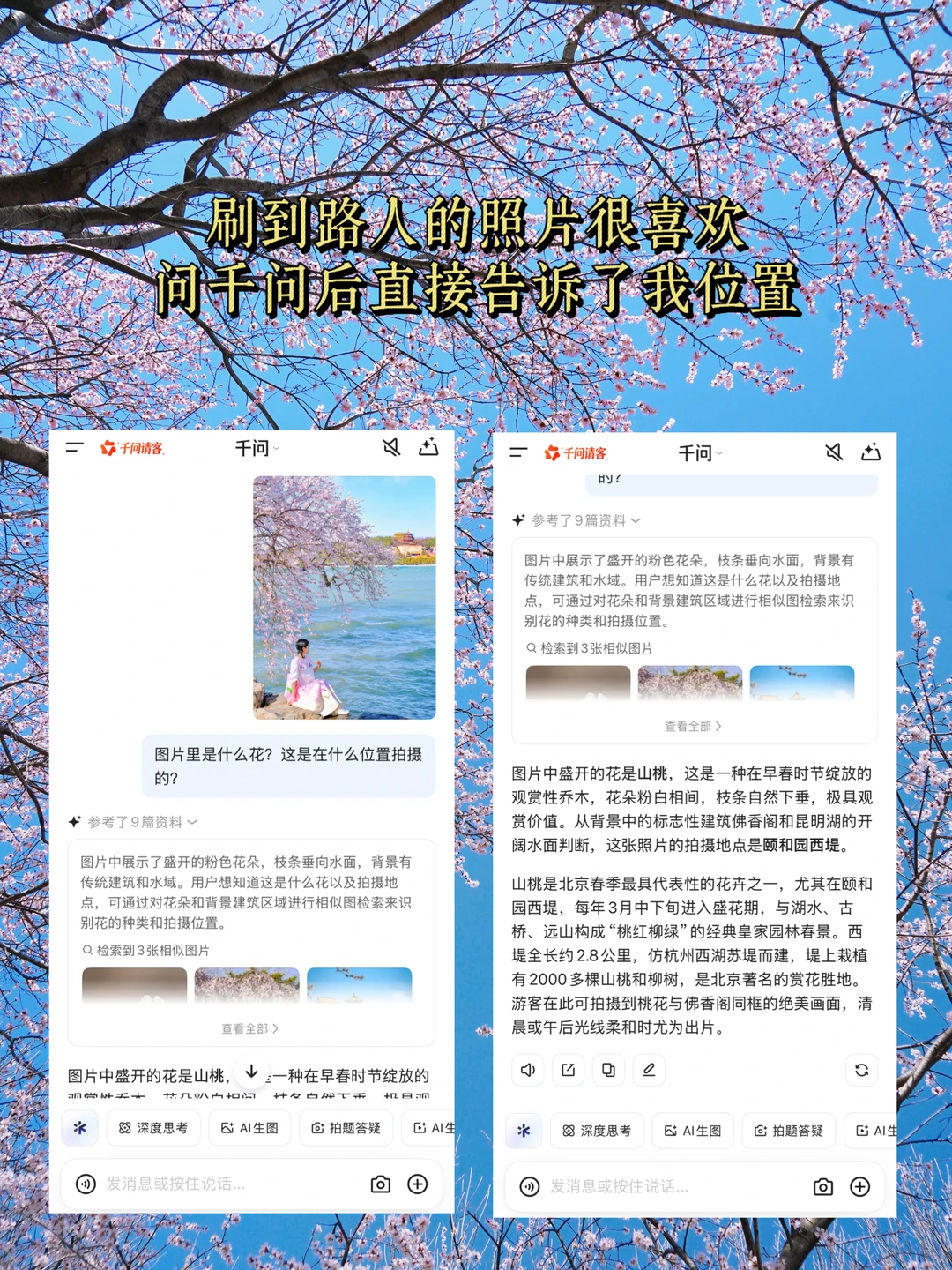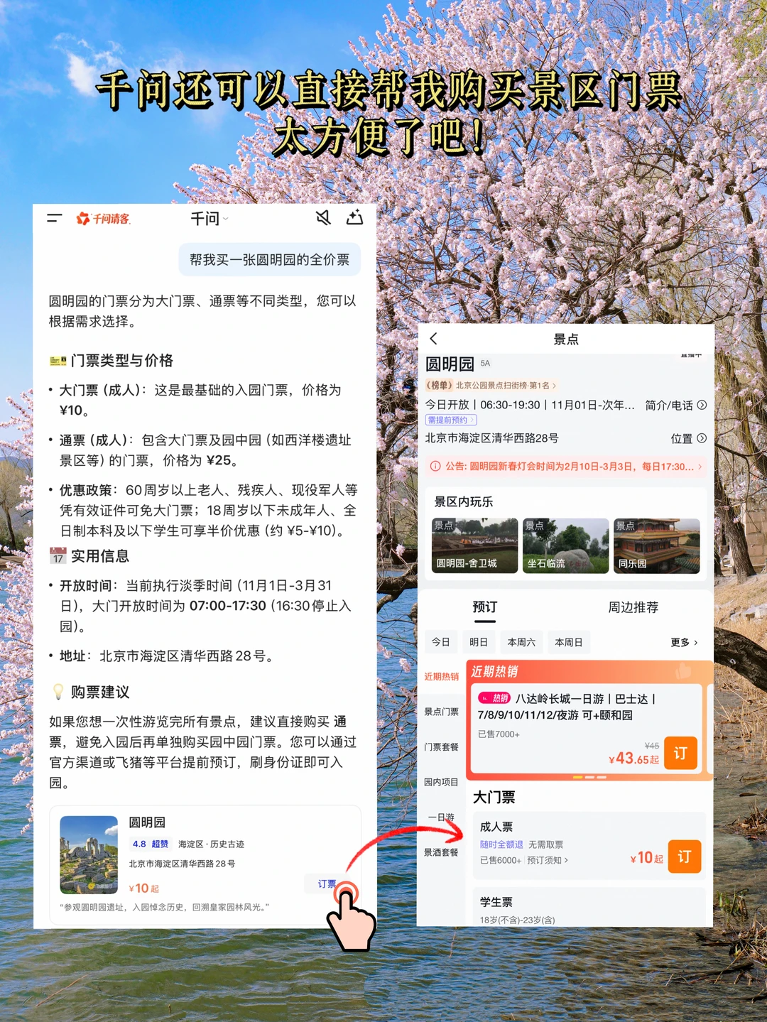 🌸北京的桃花已含苞待放,玉兰蜡梅均已开[派对R]春天出门带着千问,无论走到哪一句指令就能帮你制定赏花游玩攻略,包括拍照打卡机位、穿搭建议等,还能直接在千问上订购门票,太方便啦~