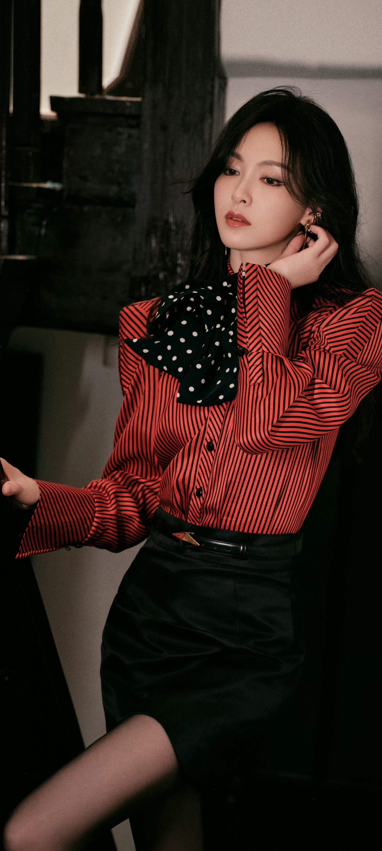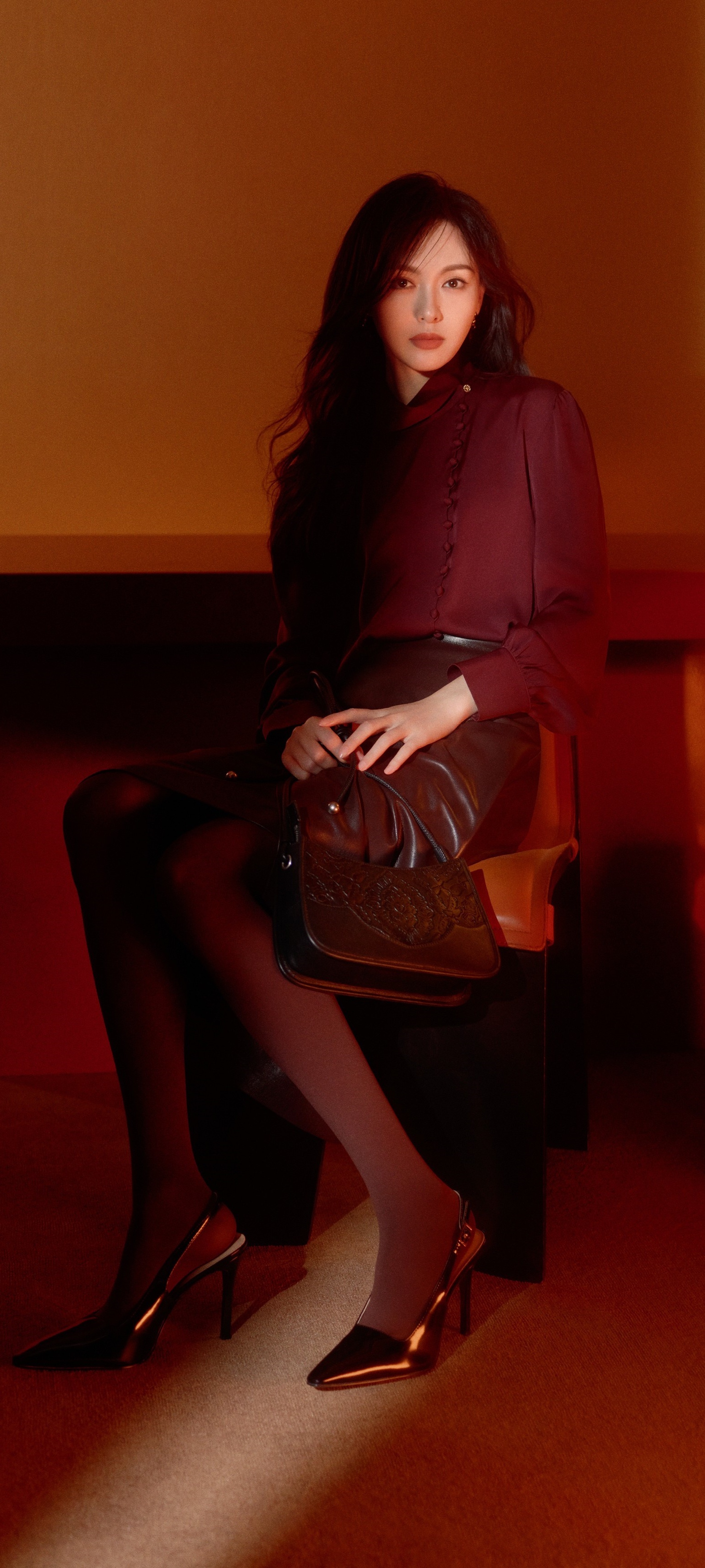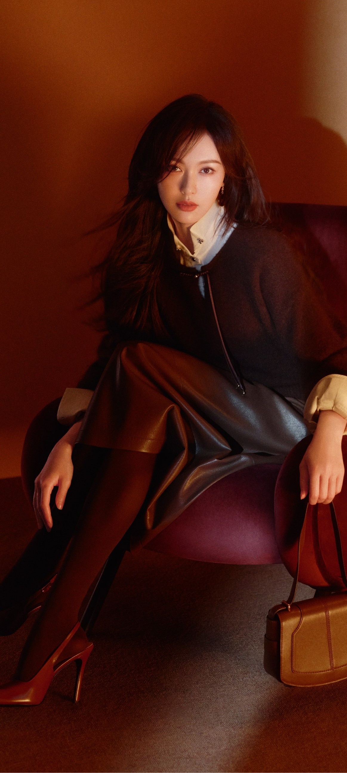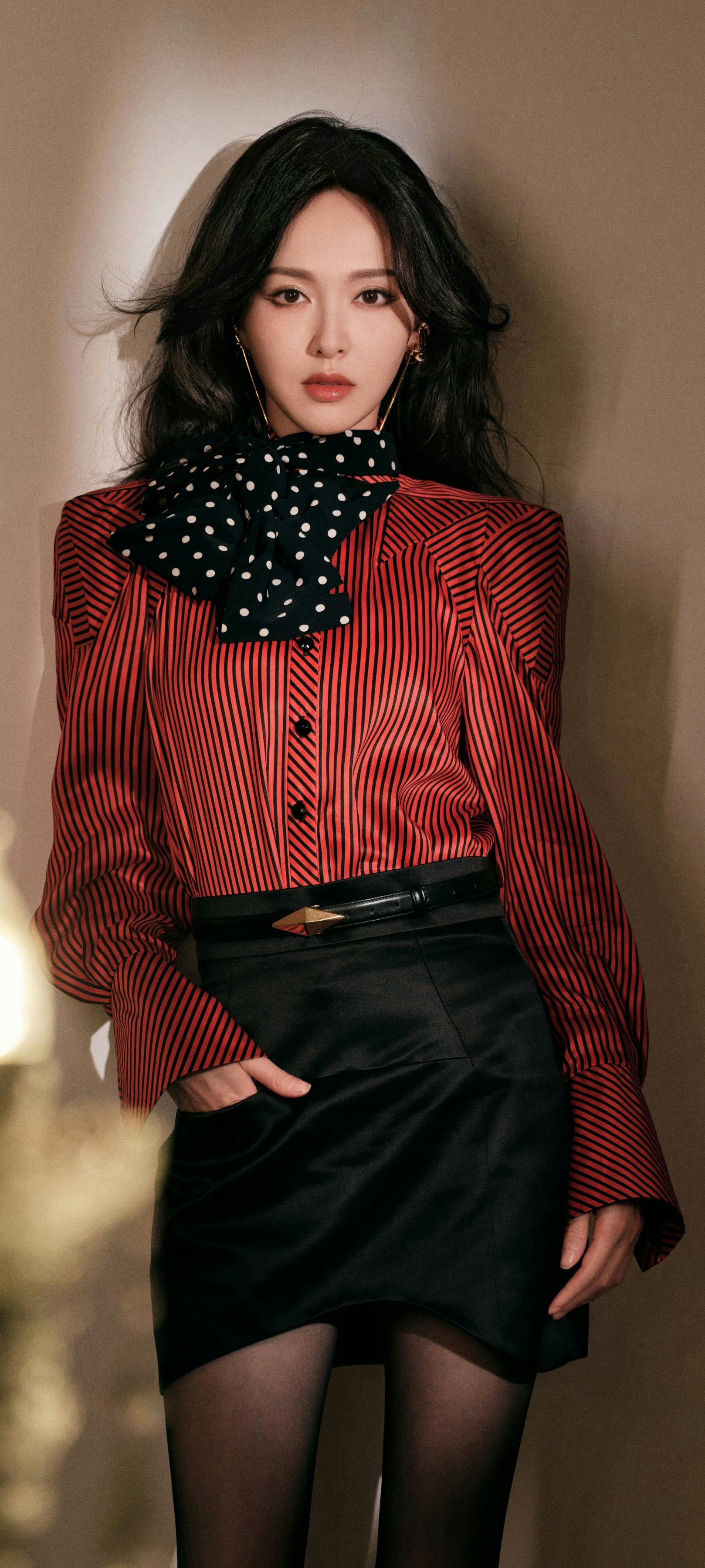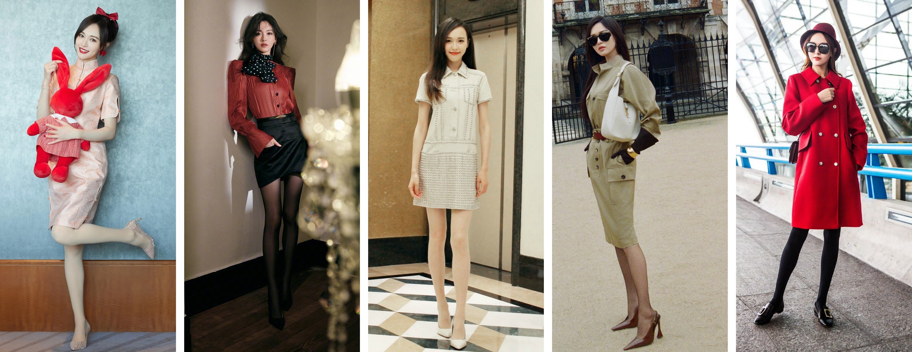 唐嫣经典穿搭壁纸:西装丝袜美腿好身材9宫格。唐嫣