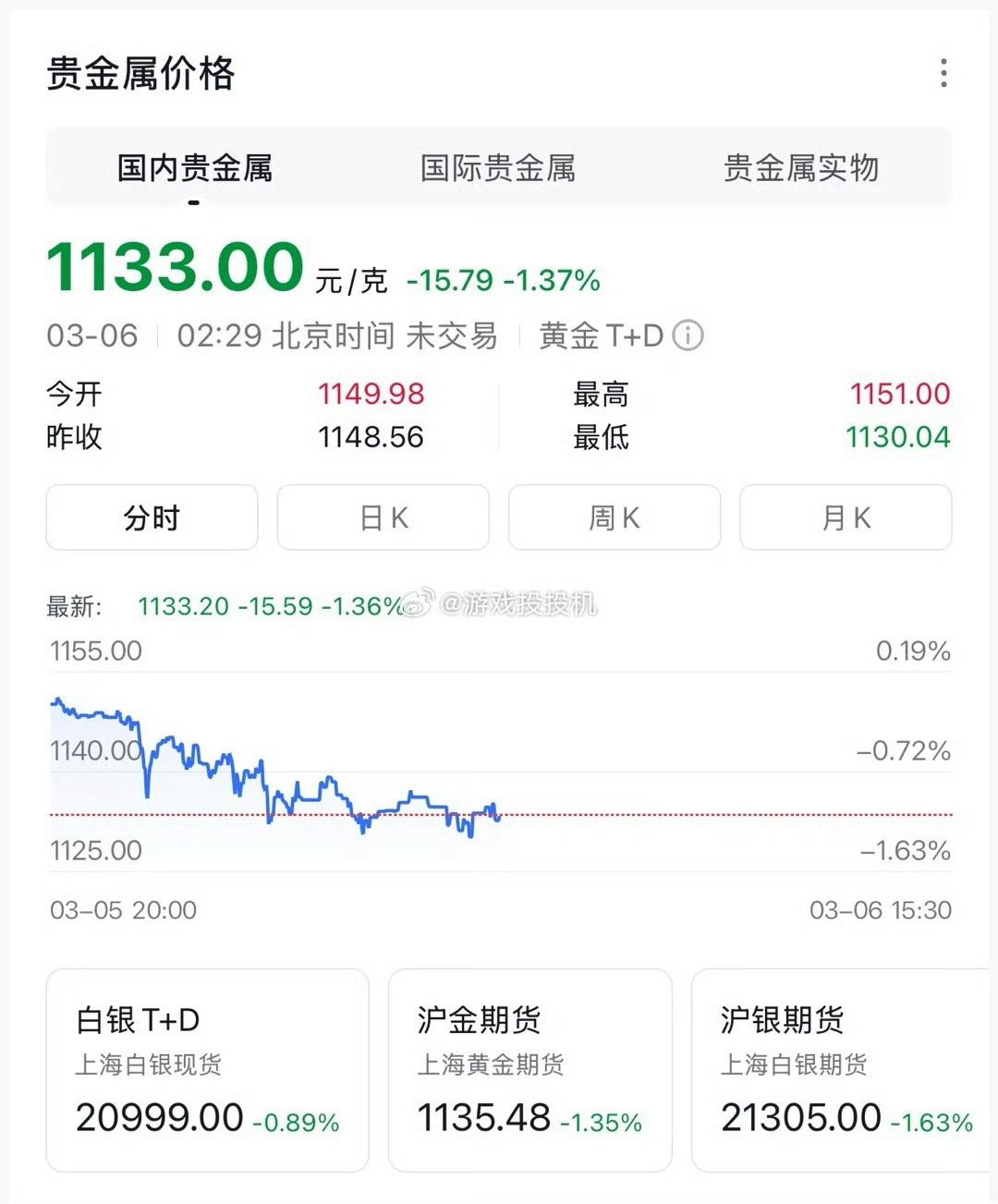 黄金不涨反跌是什么情况黄金白银这次跳水是为什么呢?中东局势一开始都看好金银,结果资金缺流向了能源,导致金银的跌幅。加上机构的收割,个人觉得近几天金银不会涨幅太大