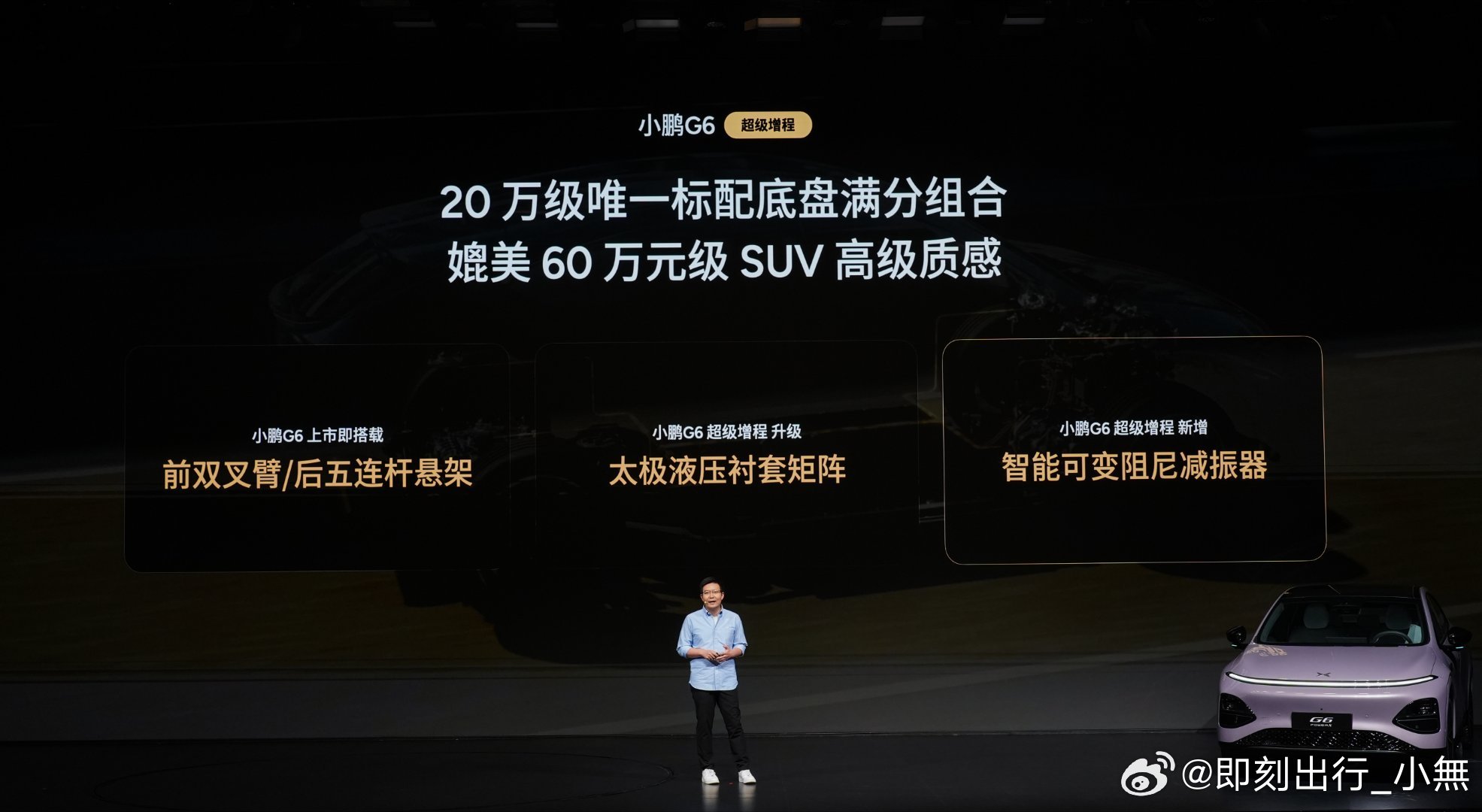 🔸20万级唯一ENC+RNC双源主动降噪,即使增程器启动,也能让家人在车上安静的打个盹🔸20万级唯一标配前双叉臂/后五连杆+太极液压衬套矩阵+智能可变阻尼减振器,拥有媲美60万级SUV的高级质感。小鹏G6超级增程六项全能一步到位小鹏G6超级增程升级搭载DCC底盘