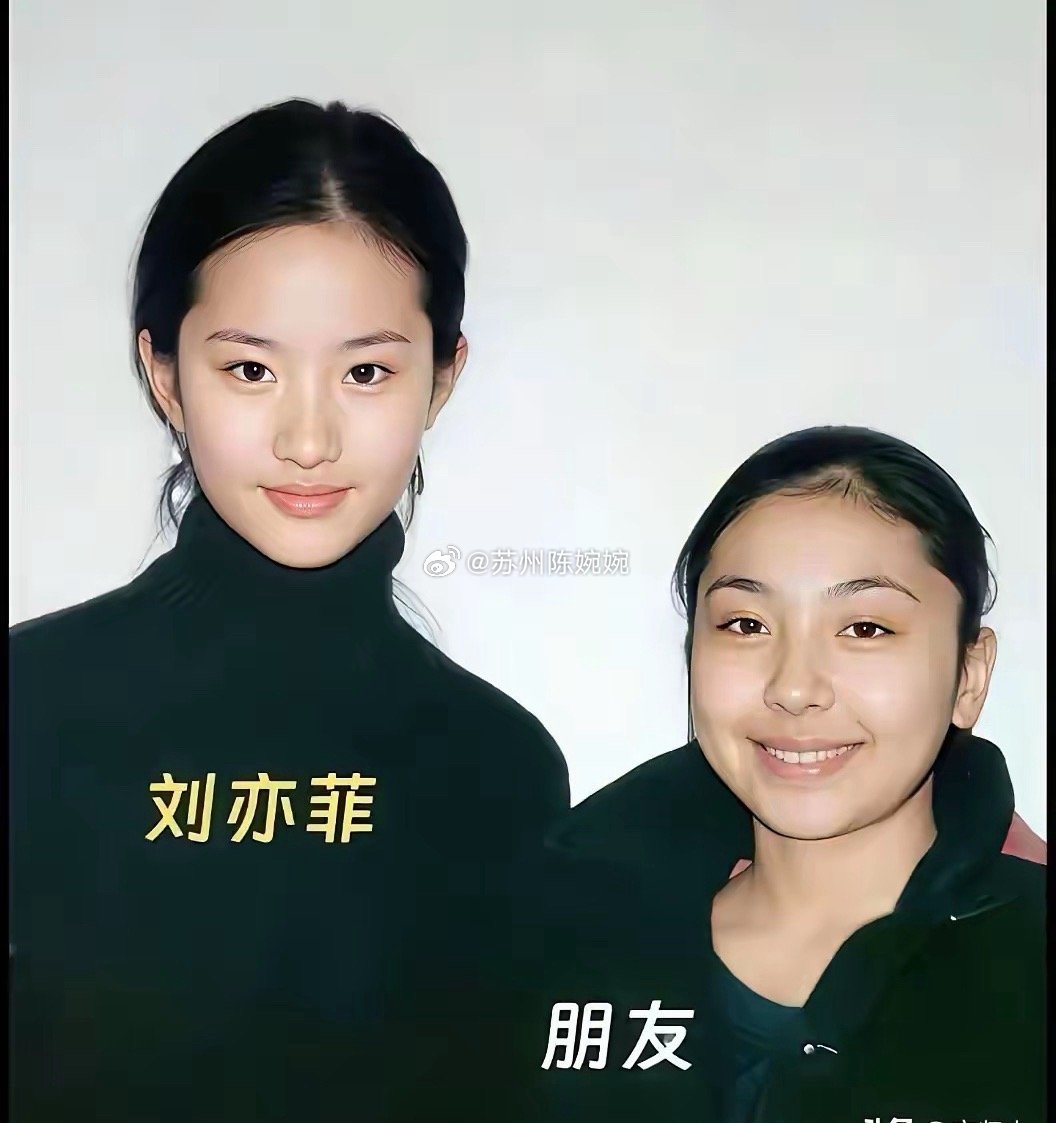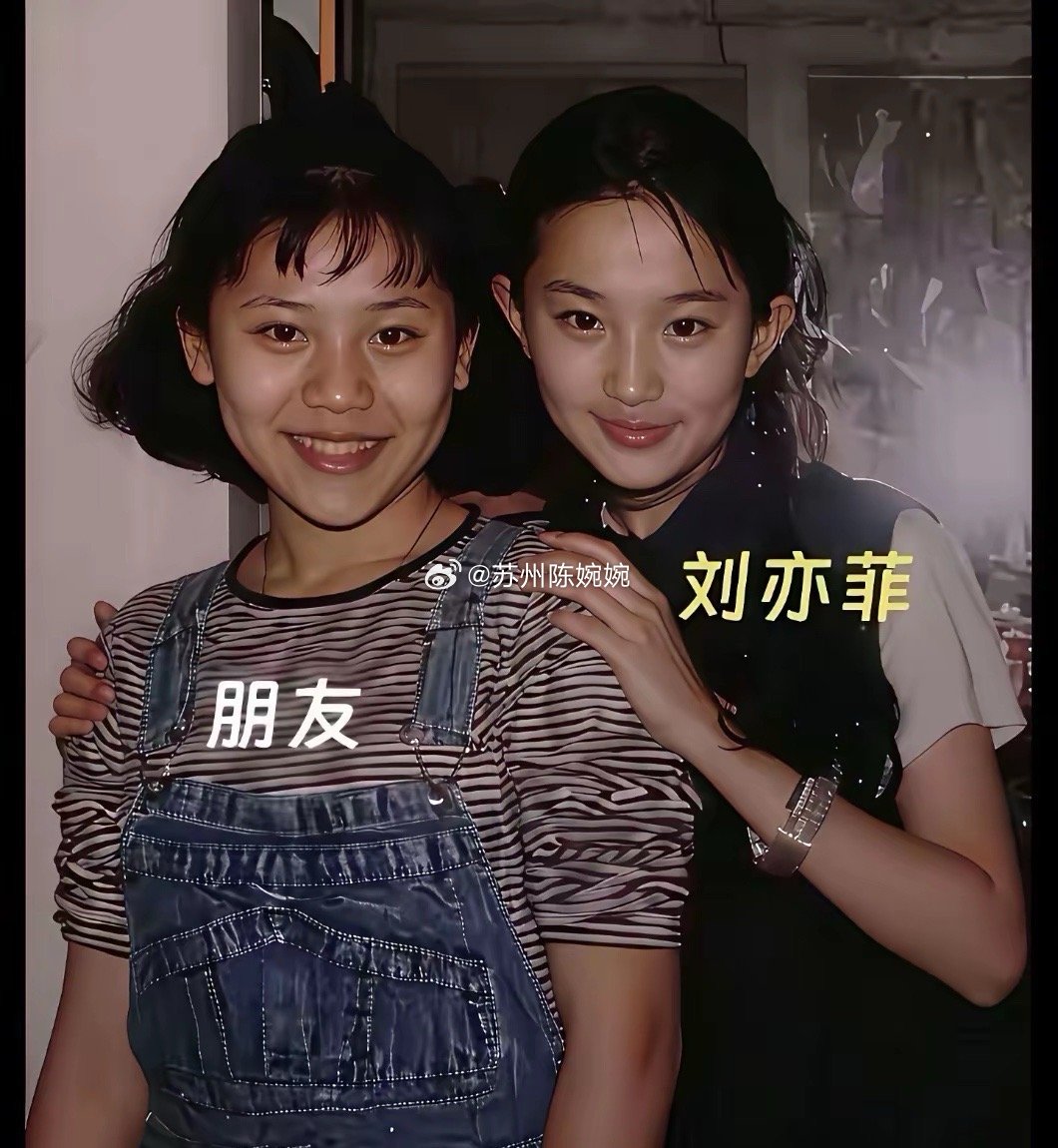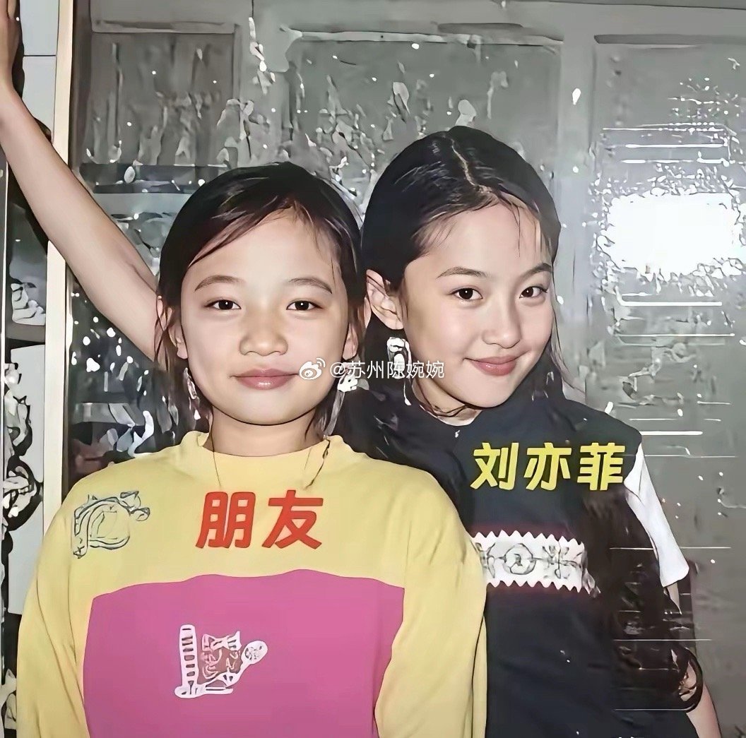 刘亦菲小时候就非常漂亮,在和朋友照相时,看着非常明显。五官精致,搭配合理,没有一