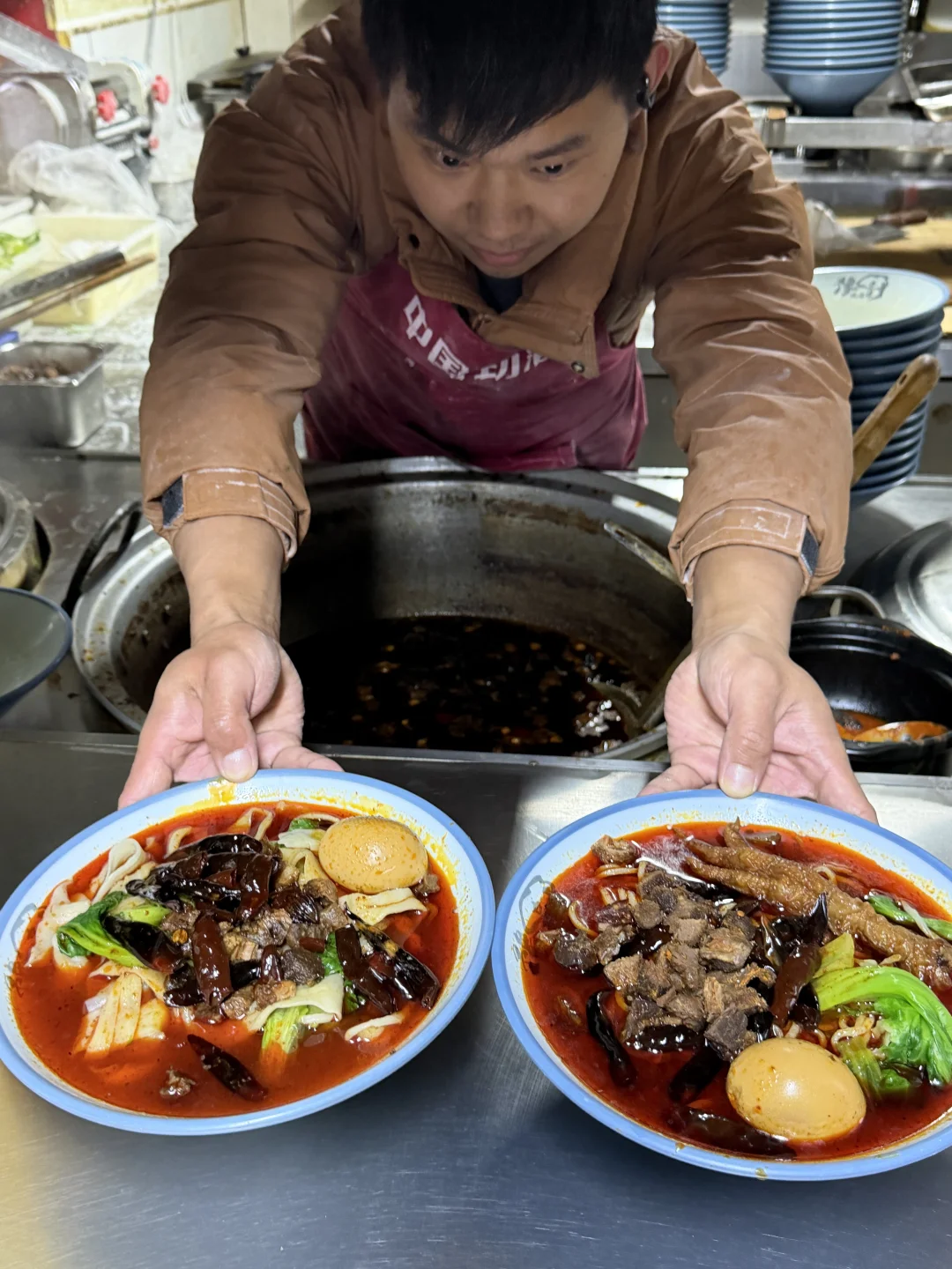 在郑州吃到了正宗的太和板面!😍 一定要多加辣椒,不辣,但是很香❗️ 还有超大块的牛肉粒,一口满满的肉感😭